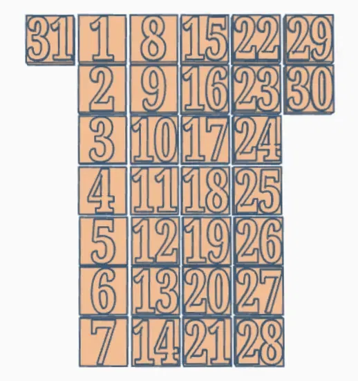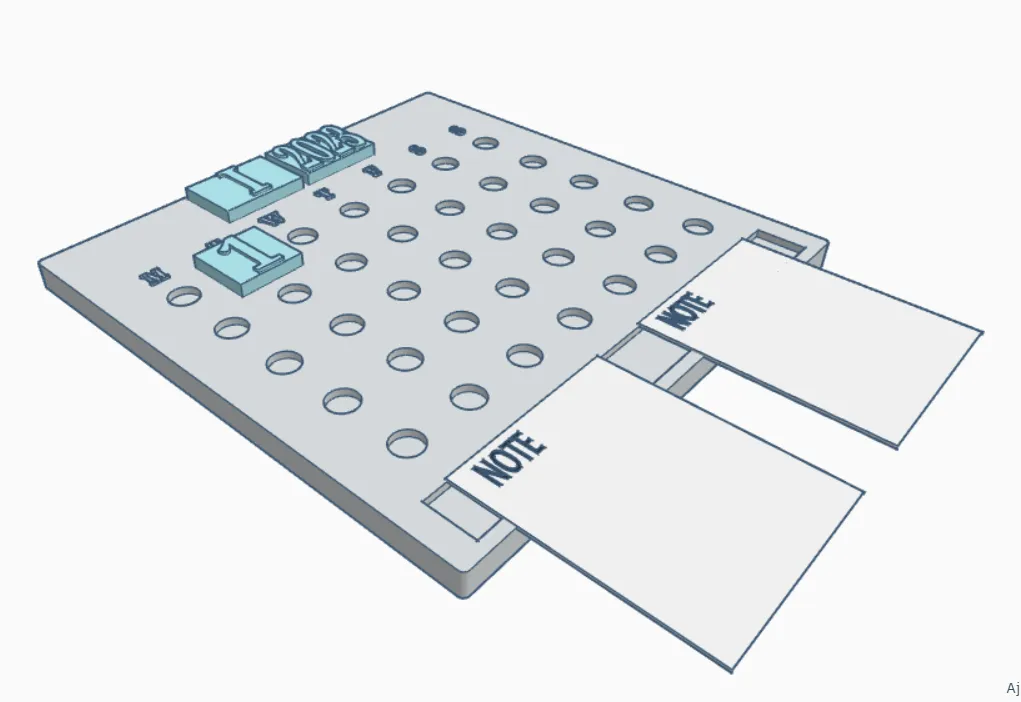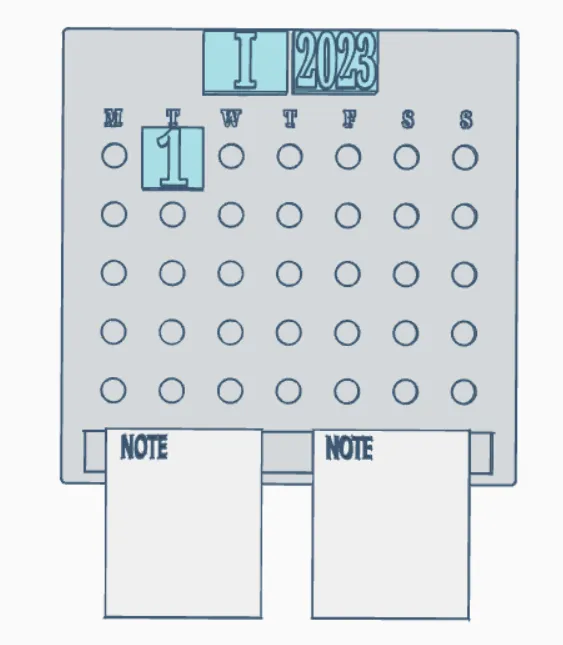 Lịch tương tác được tạo thành từ nhiều nam châm để cho phép định vị lại các ngày, tháng và năm nhằm có thể tái sử dụng các mảnh mà không tạo ra gần như bất kỳ chất thải nào. Tất cả các nam châm, ngoại trừ những nam châm được sử dụng để đặt ghi chú, có đường kính 12 mm và độ dày 3 mm, trong khi nam châm cho ghi chú có chiều dài 60 mm x chiều rộng 10 mm x độ dày 3 mm. Các ghi chú sẽ dính lại khi đặt một nam châm khác lên trên ghi chú đó.