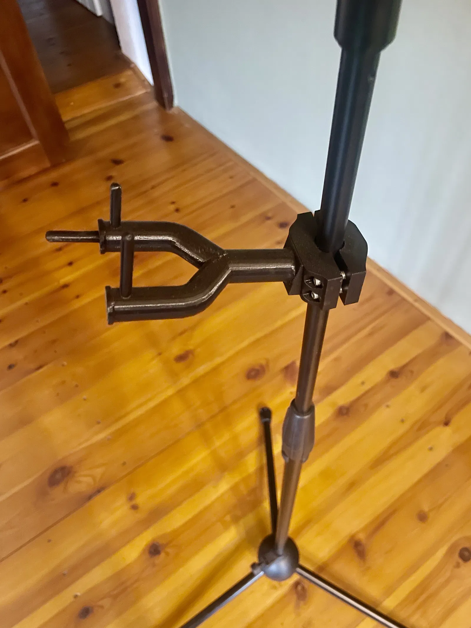 Sản phẩm được thiết kế để gắn vào chân micro hoặc chân để nhạc. Dùng để đặt nhạc cụ nhanh chóng trong các buổi biểu diễn.