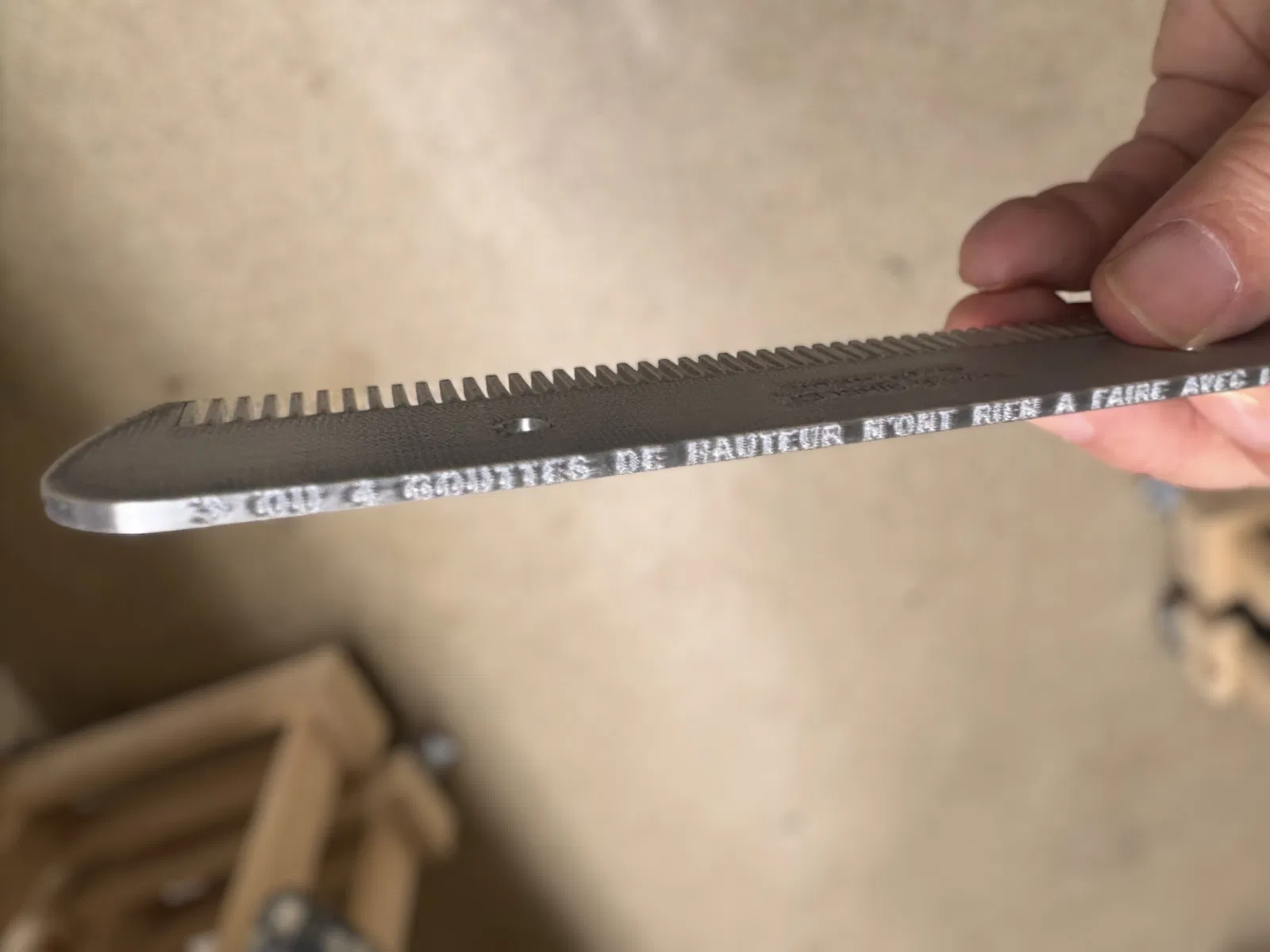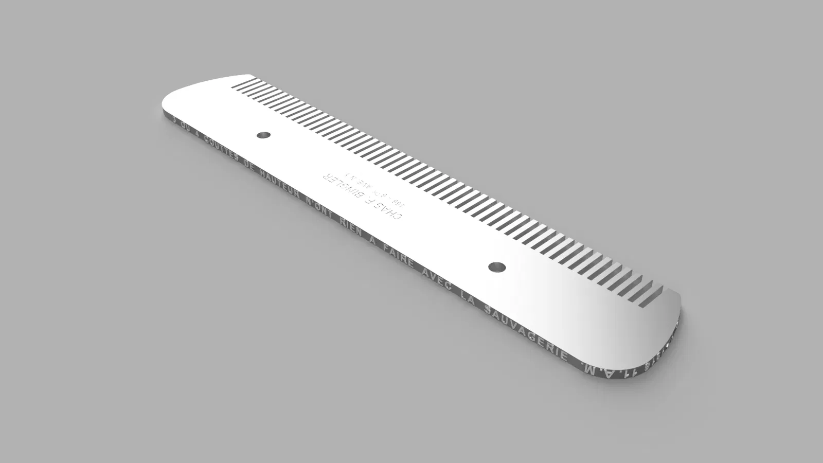 Để hiển thị tốt nhất mặt trên của chiếc lược, hãy in với phần chữ khắc HƯỚNG XUỐNG, và đánh bóng lớp trên cùng, đó sẽ là mặt sau của chiếc lược.