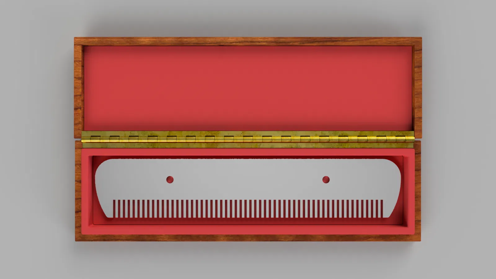 Mô hình khác với bản gốc bất cứ khi nào cần thiết để tối ưu hóa cho việc in 3D FDM đa vật liệu. Tôi đã bao gồm các tệp STL, cũng như tệp 3MF, vì dự án này có các vấn đề về kết cấu phức tạp, bao gồm để gợi ý vân gỗ, đánh bóng (ironing) để mô phỏng kim loại và lớp phủ mờ (fuzzy skin) để tái tạo vải nỉ. Hộp có bản lề piano, một chi tiết đặc biệt khó thực hiện trong in 3D. Tôi không thể bỏ qua thử thách mô hình hóa và in hộp này!