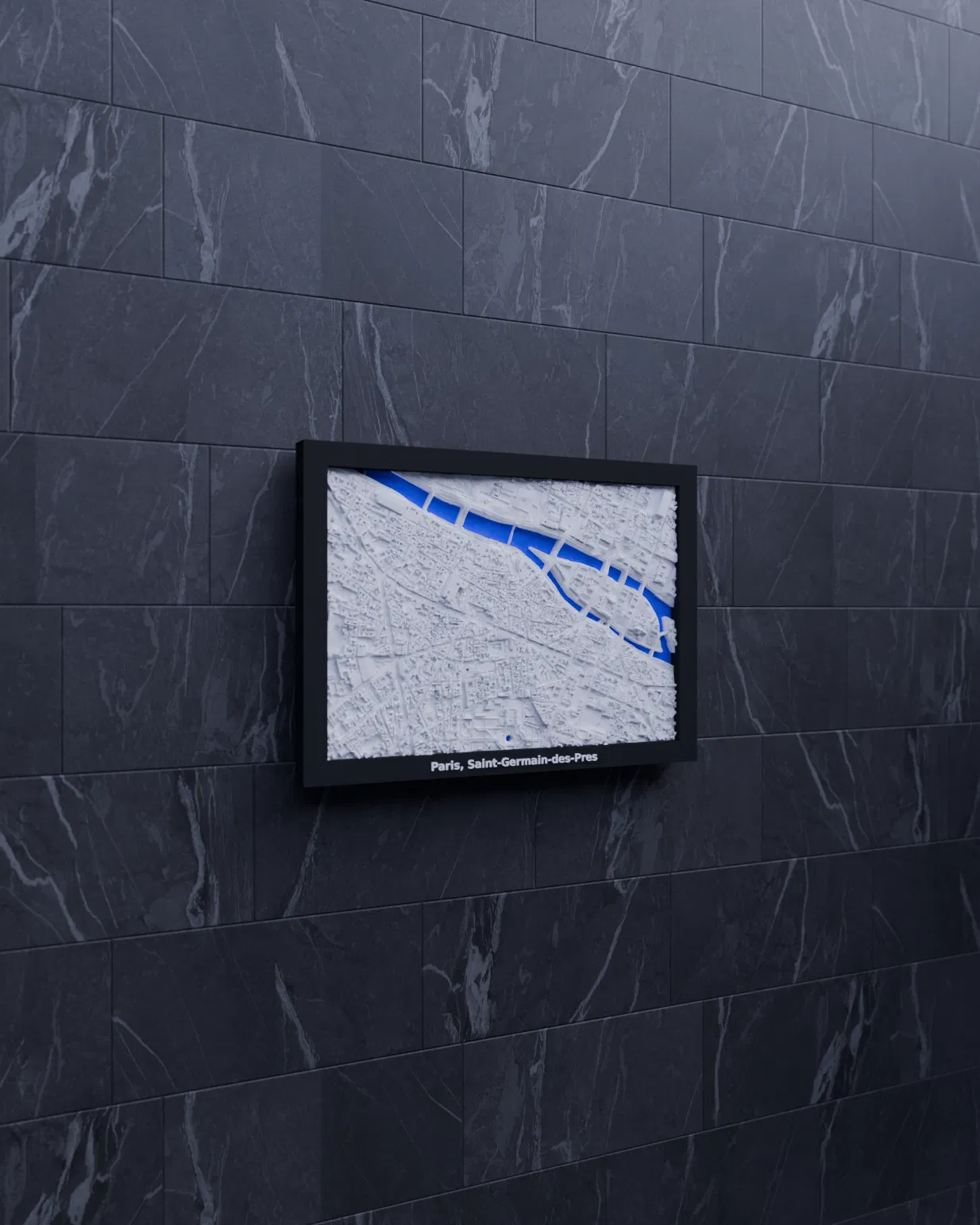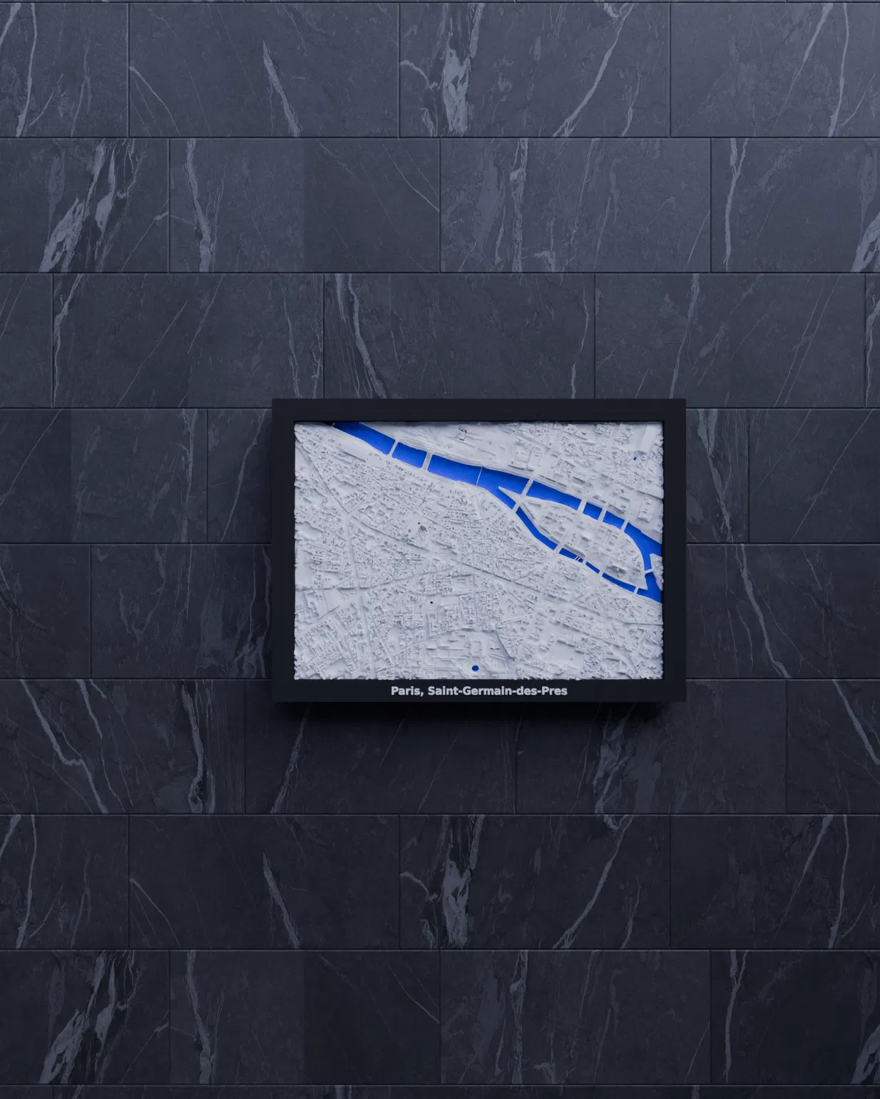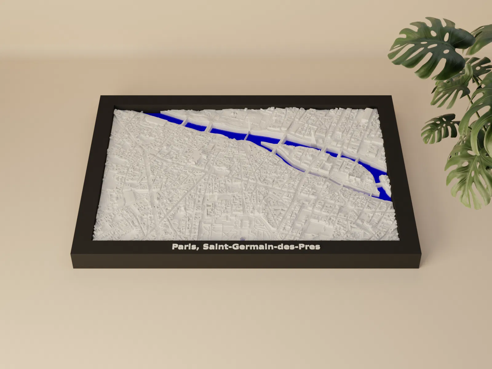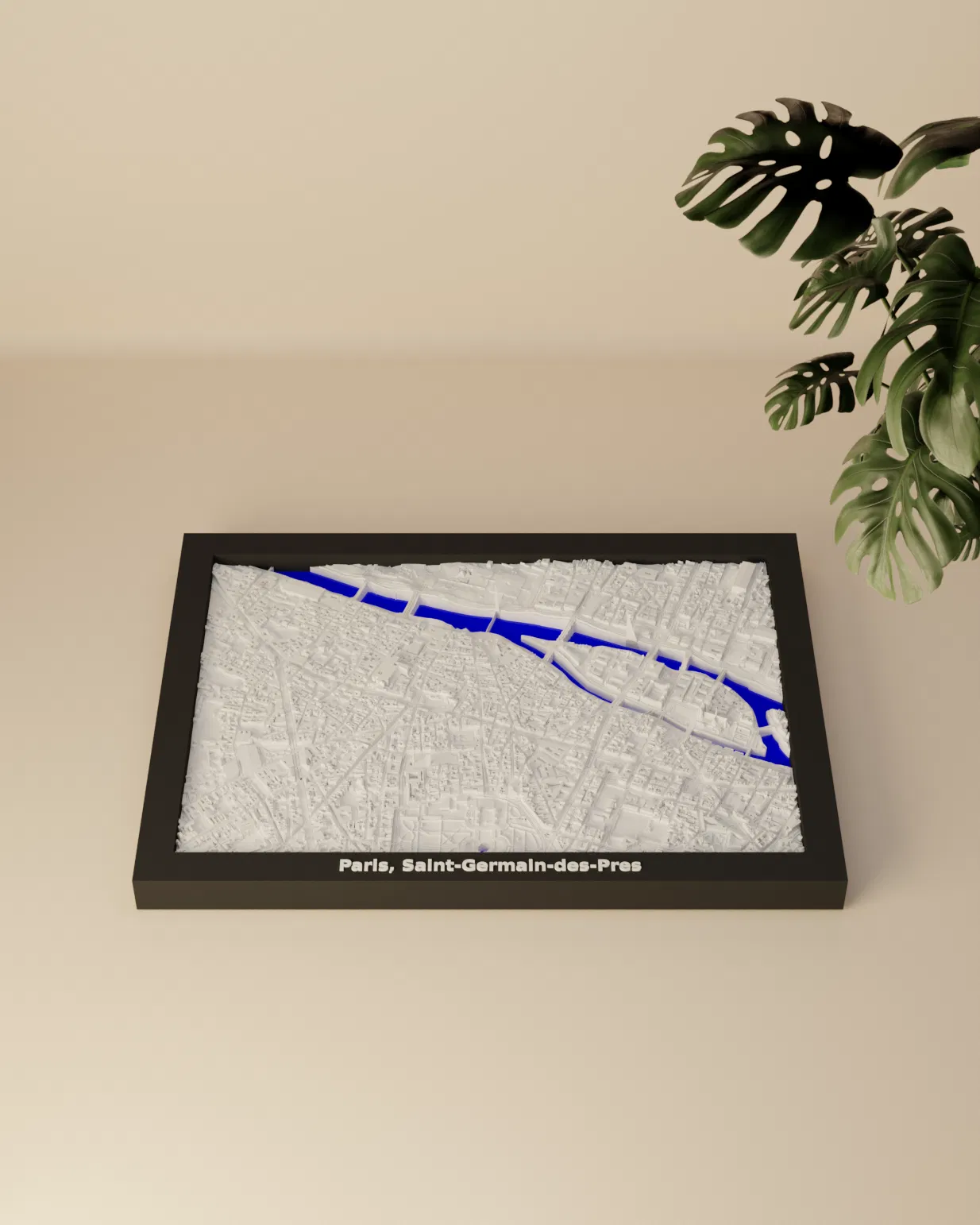 Lưu giữ vẻ đẹp cảnh quan Paris, Saint-Germain-des-Pres với mô hình thu nhỏ địa hình 3D có thể in được. Mô hình này tái hiện khu vực địa lý với kích thước thu nhỏ lý tưởng cho trang trí hoặc giáo dục.