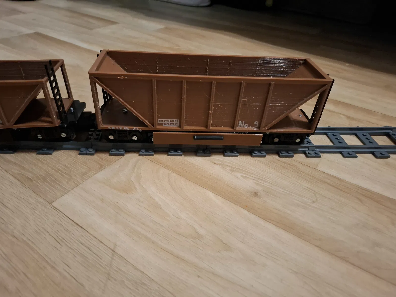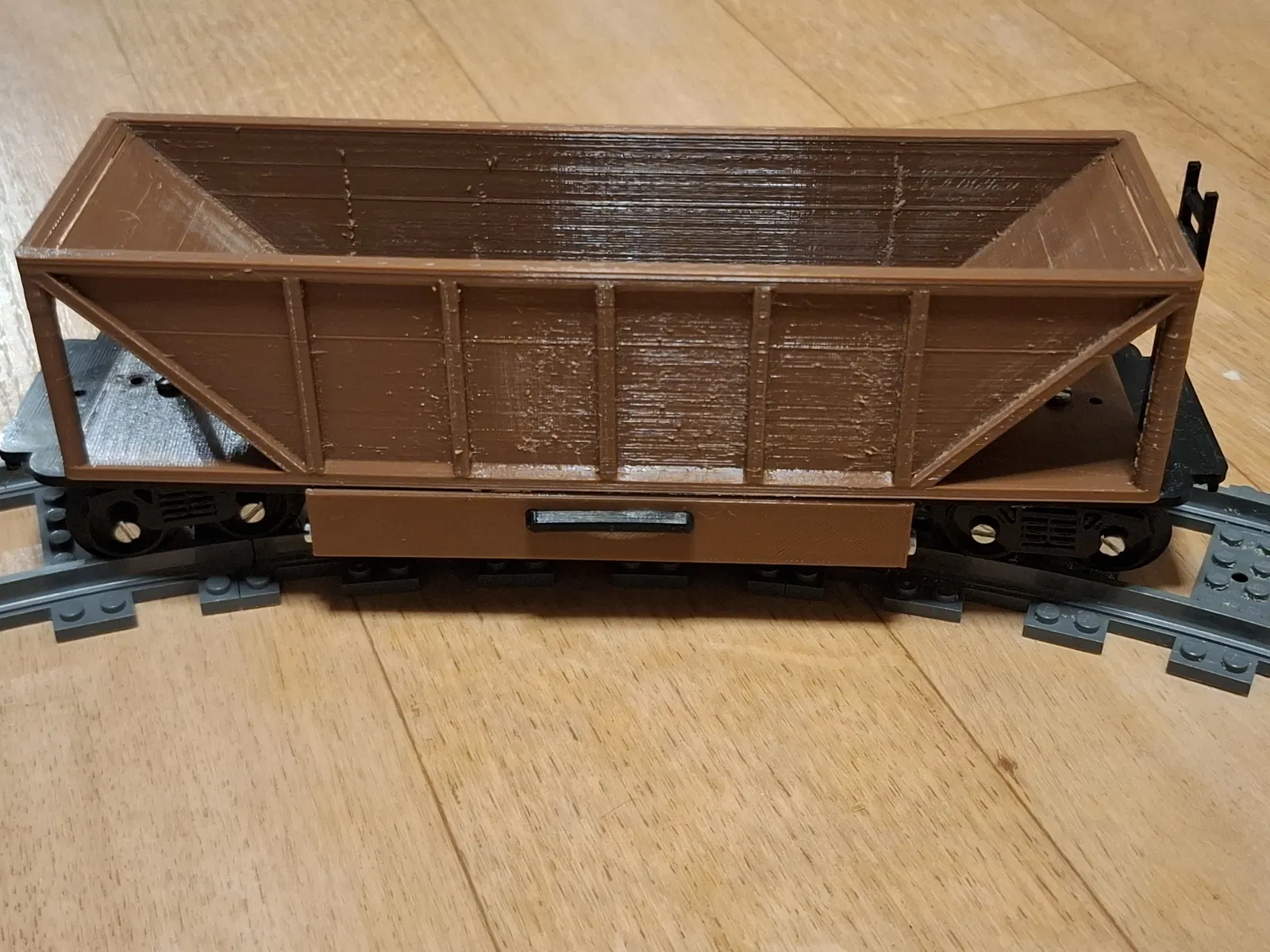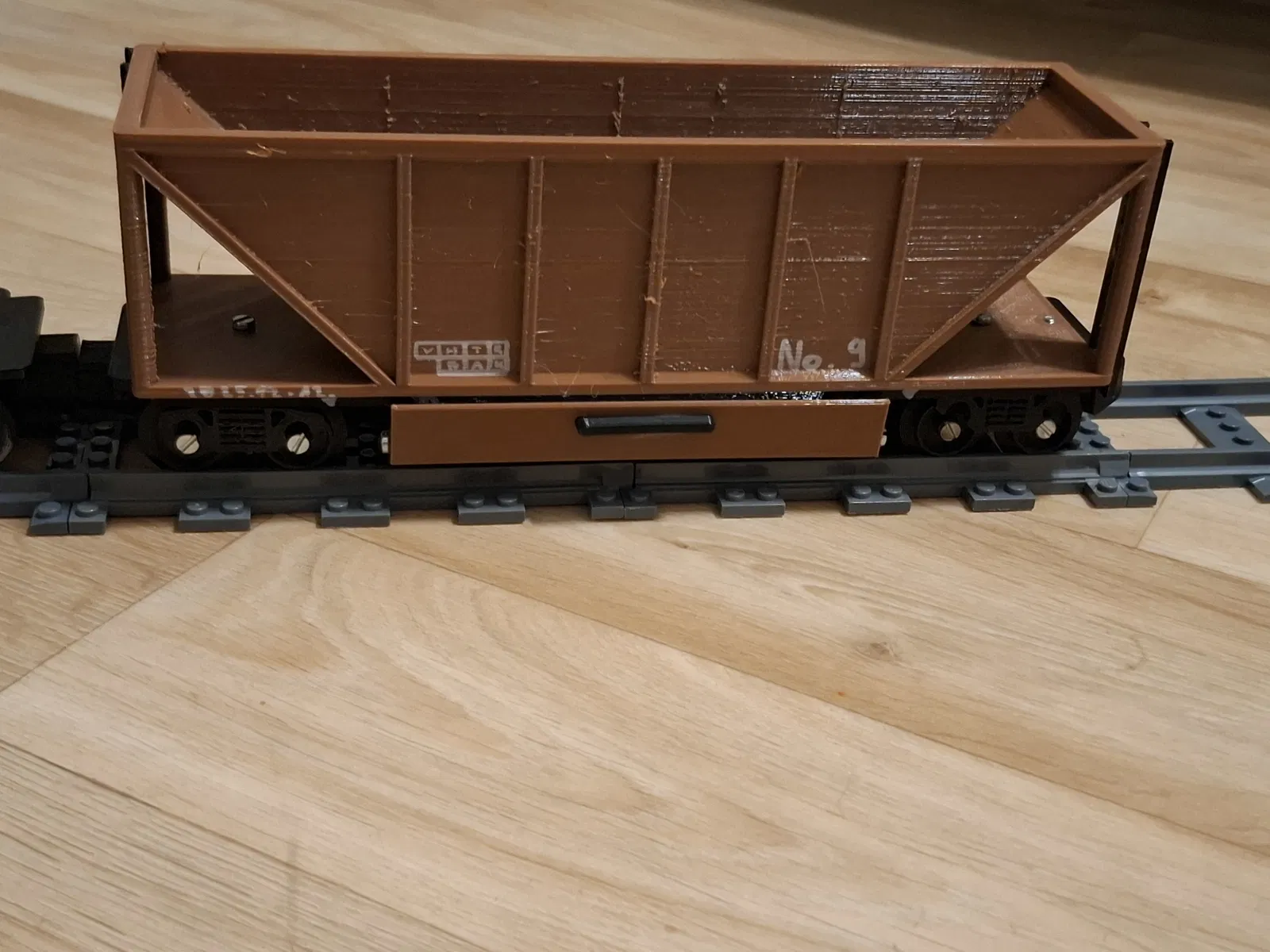 Tàu Lego - toa xe chở hàng chức năng tương thích. Mô hình này tương thích với tàu Lego và là phần mở rộng cho các mô hình của ChisTompso, sử dụng khung gầm và khớp nối của anh ấy. Phiên bản cuối cùng có phần trên dài hơn. Vít 3x12mm có thể dùng vít ngắn hơn.