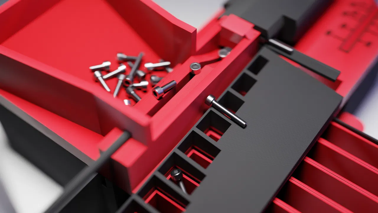 Thiết bị phân loại bu lông/vít M3 hoàn toàn bằng máy in 3D, giúp bạn chấm dứt cảnh vật lộn thủ công. Vận hành bằng tay, không cần động cơ hay bộ phận phụ trợ. In bằng PLA, độ tin cậy cao, với các khay tháo rời. Hỗ trợ nhiều chiều dài bu lông M3 từ 6mm đến 40mm. Vui lòng vận hành chậm để đảm bảo hiệu quả.