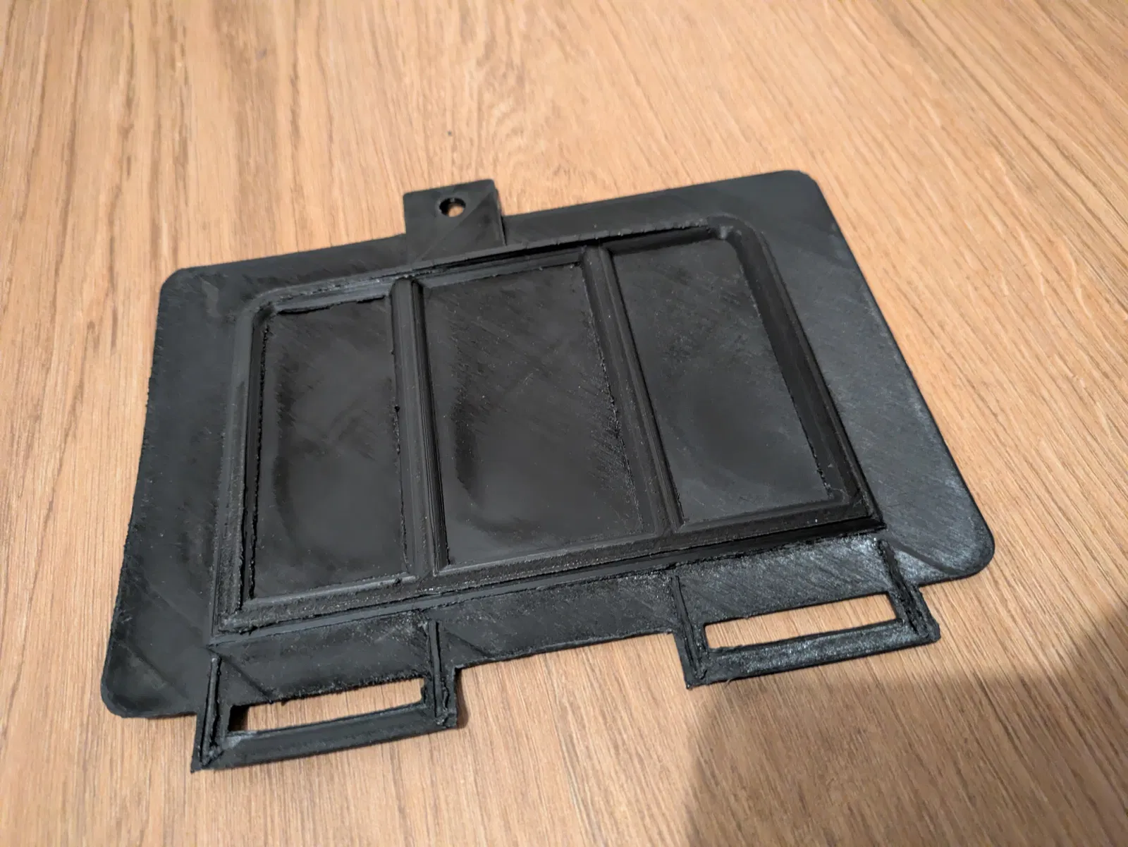 Cái nắp zin bị cong vênh, nên tui làm cái mới. v2 - sau khi in xong, tui nhận thấy mấy cái phần gia cố nhỏ không cần thiết và làm cái nắp bị cong. Sau khi gỡ bỏ nó ra thì mọi thứ đều ổn.