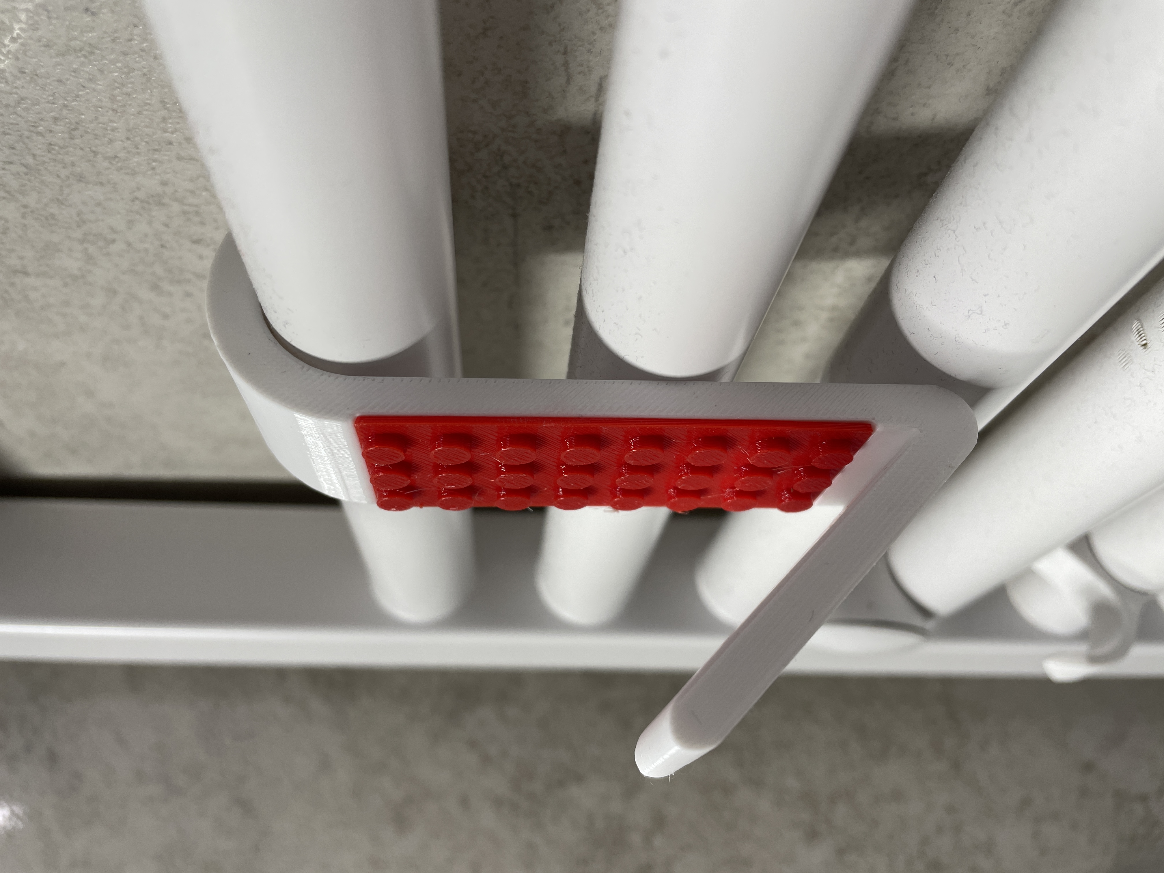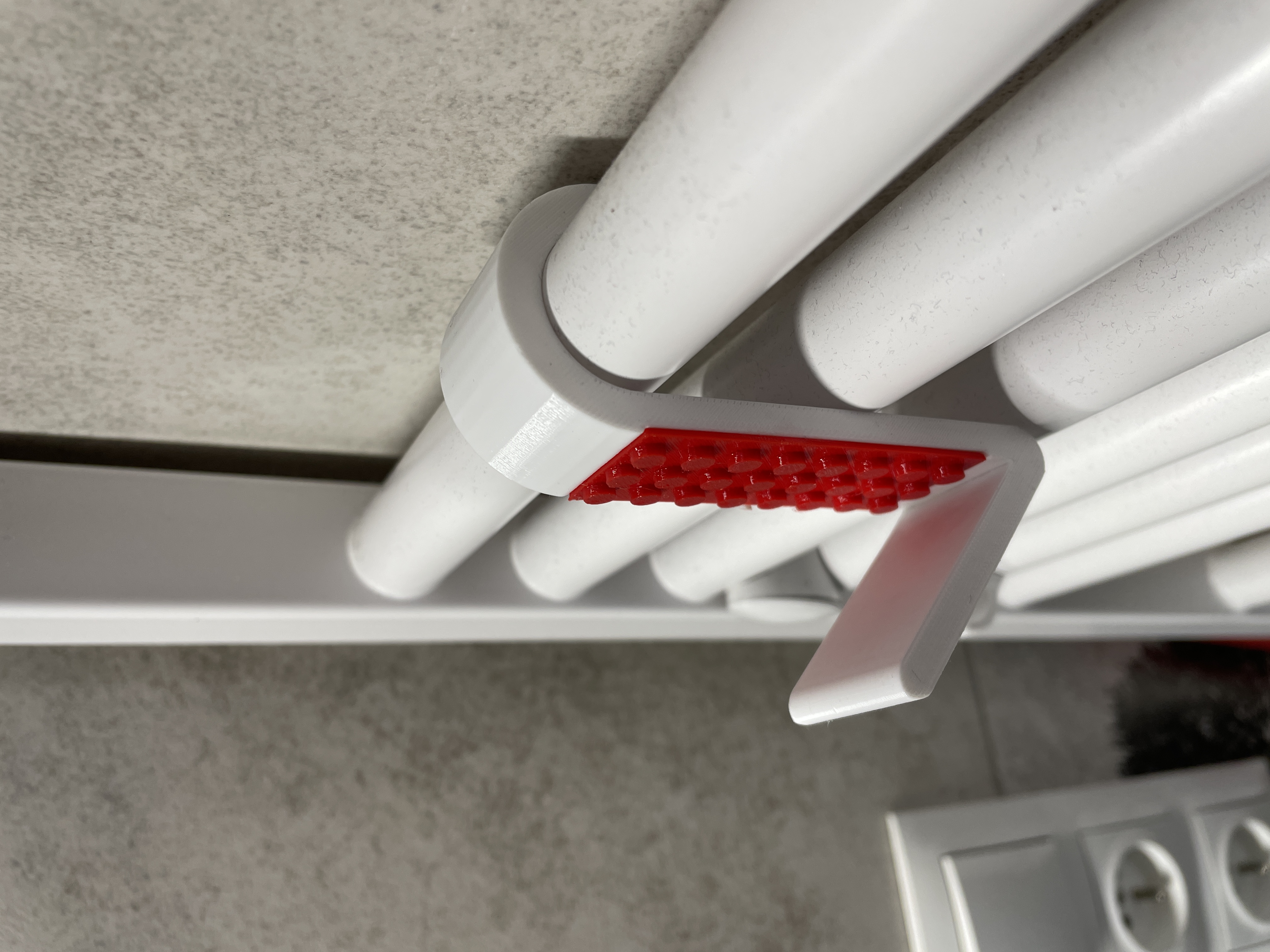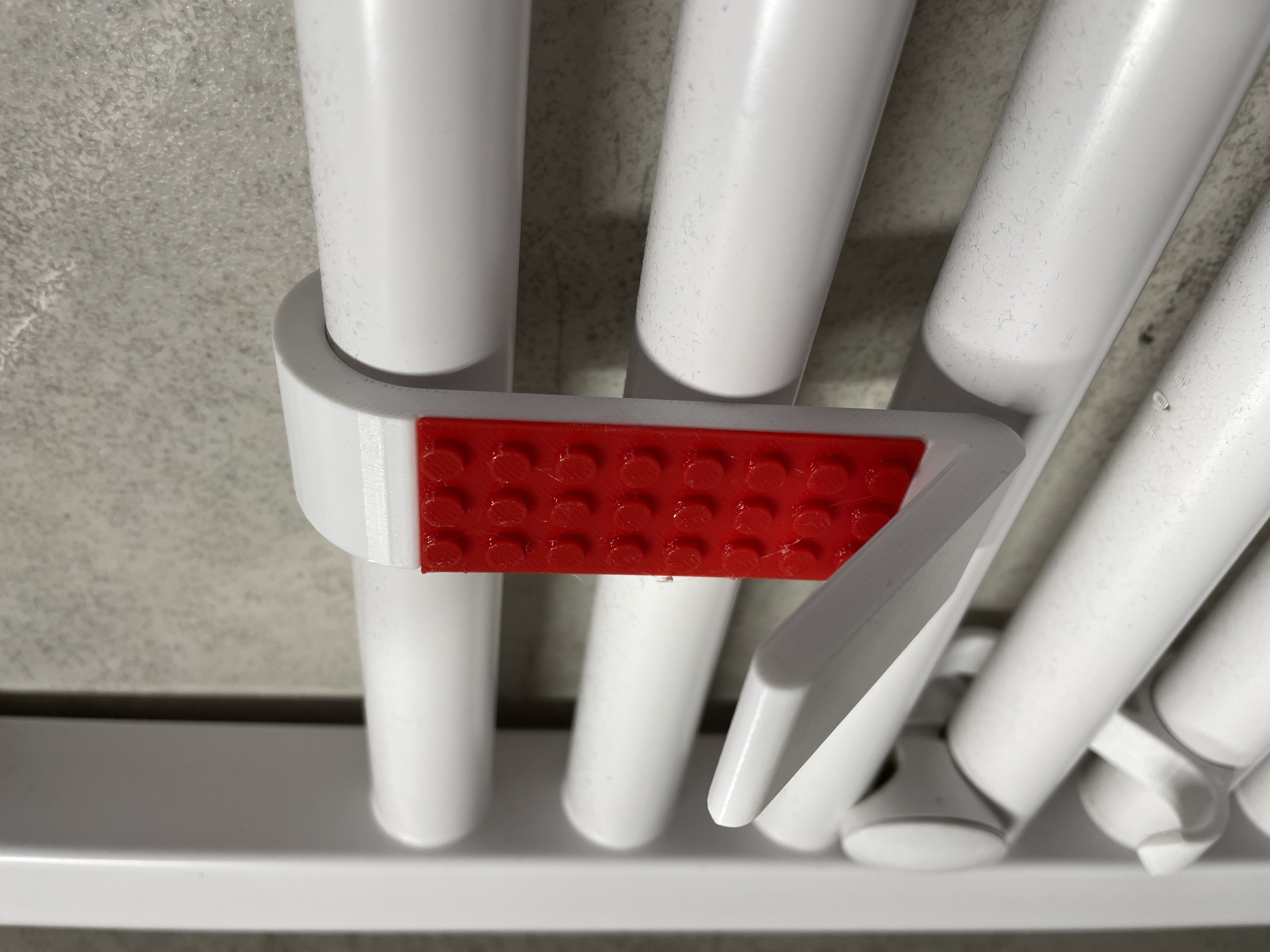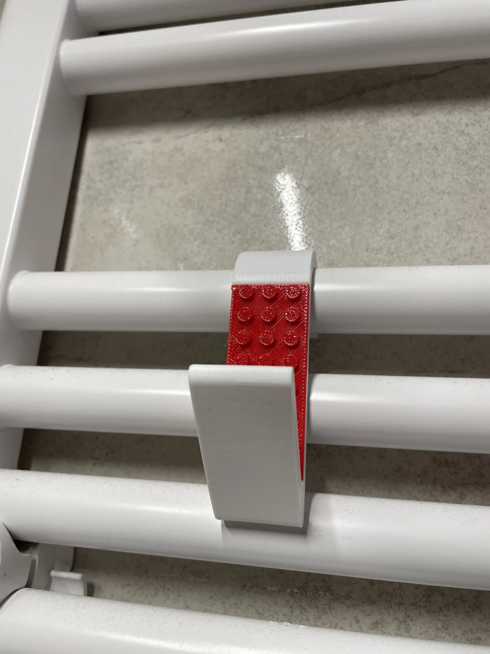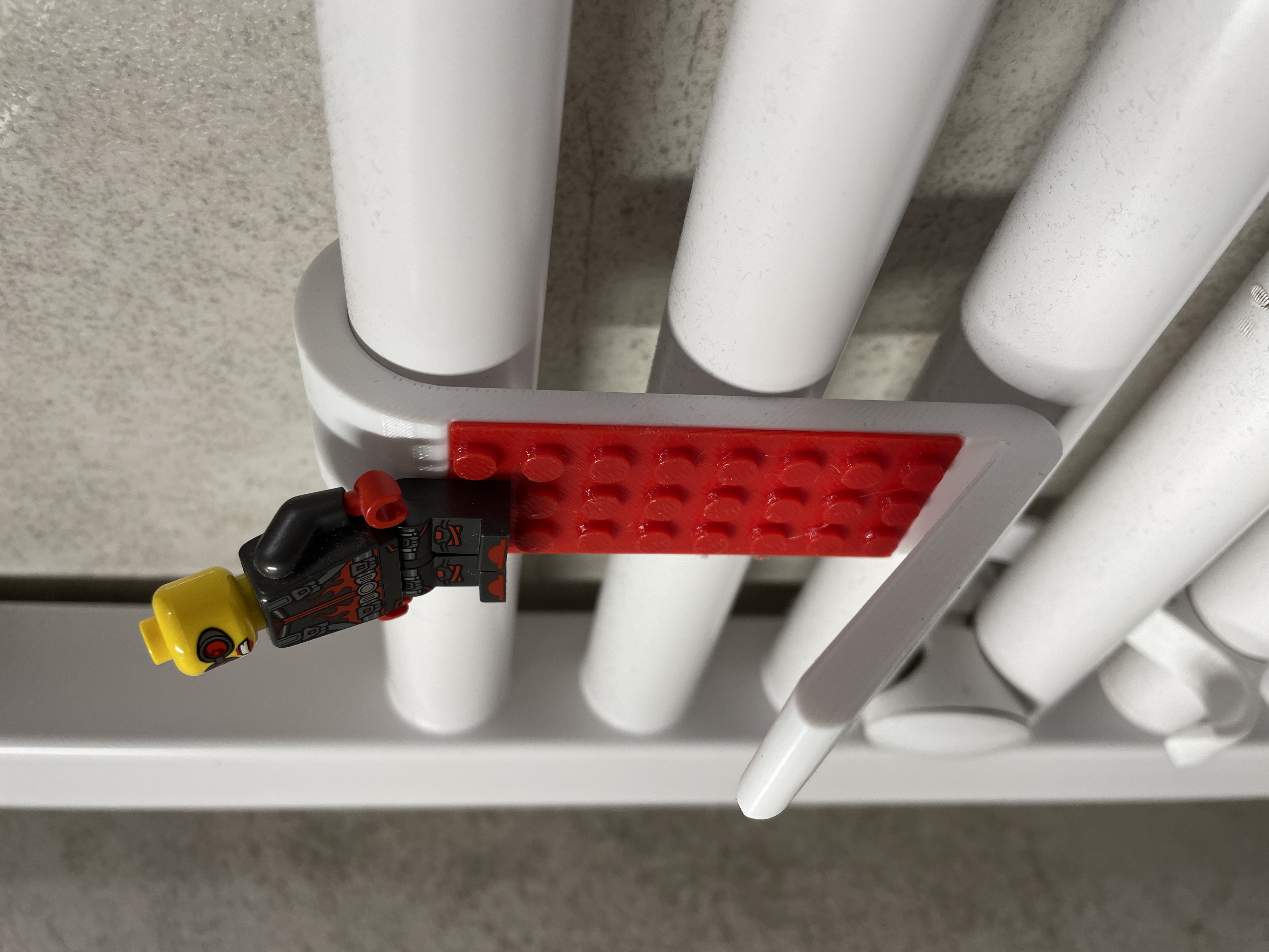 Chiếc móc treo khăn/áo choàng tắm độc đáo, lấy cảm hứng từ LEGO, gắn trực tiếp lên ống sưởi phòng tắm Ø23/24 mm. Dễ dàng in hai màu, không cần hỗ trợ. Kích thước nhỏ gọn, vật liệu PETG khuyên dùng cho độ bền cao.