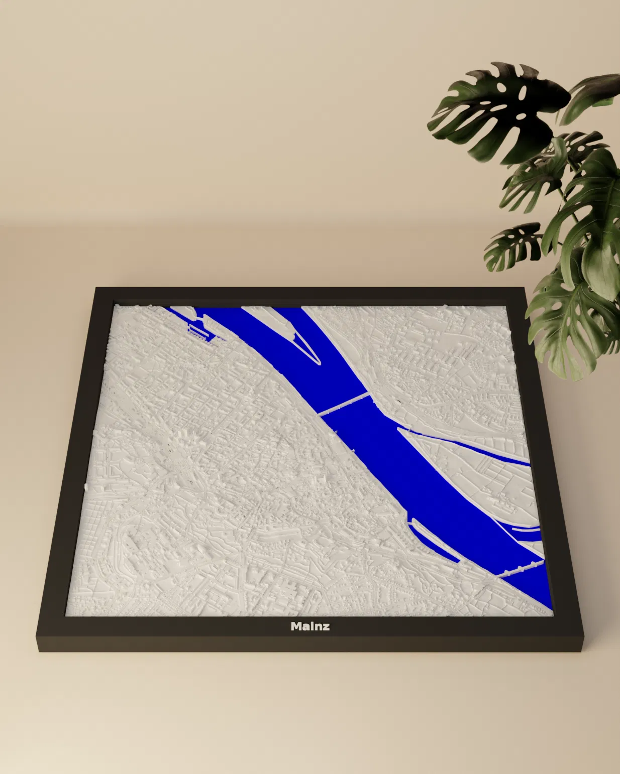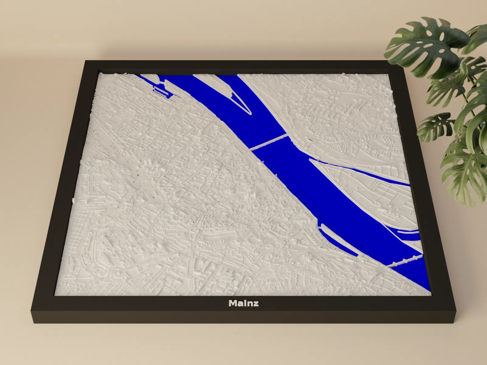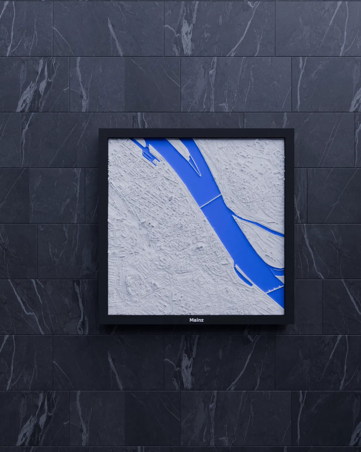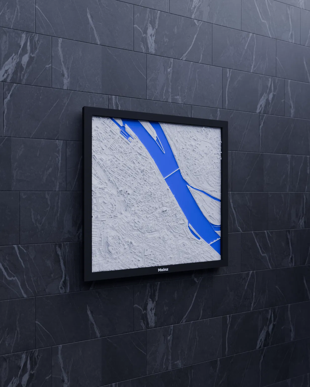 Mô hình 3D địa hình thu nhỏ của Mainz, Đức, bắt trọn cảnh quan thành phố. Kích thước 200x200mm, tỷ lệ ~16537:1. Lý tưởng để trang trí, giáo dục. Bao gồm 3 loại khung khác nhau.