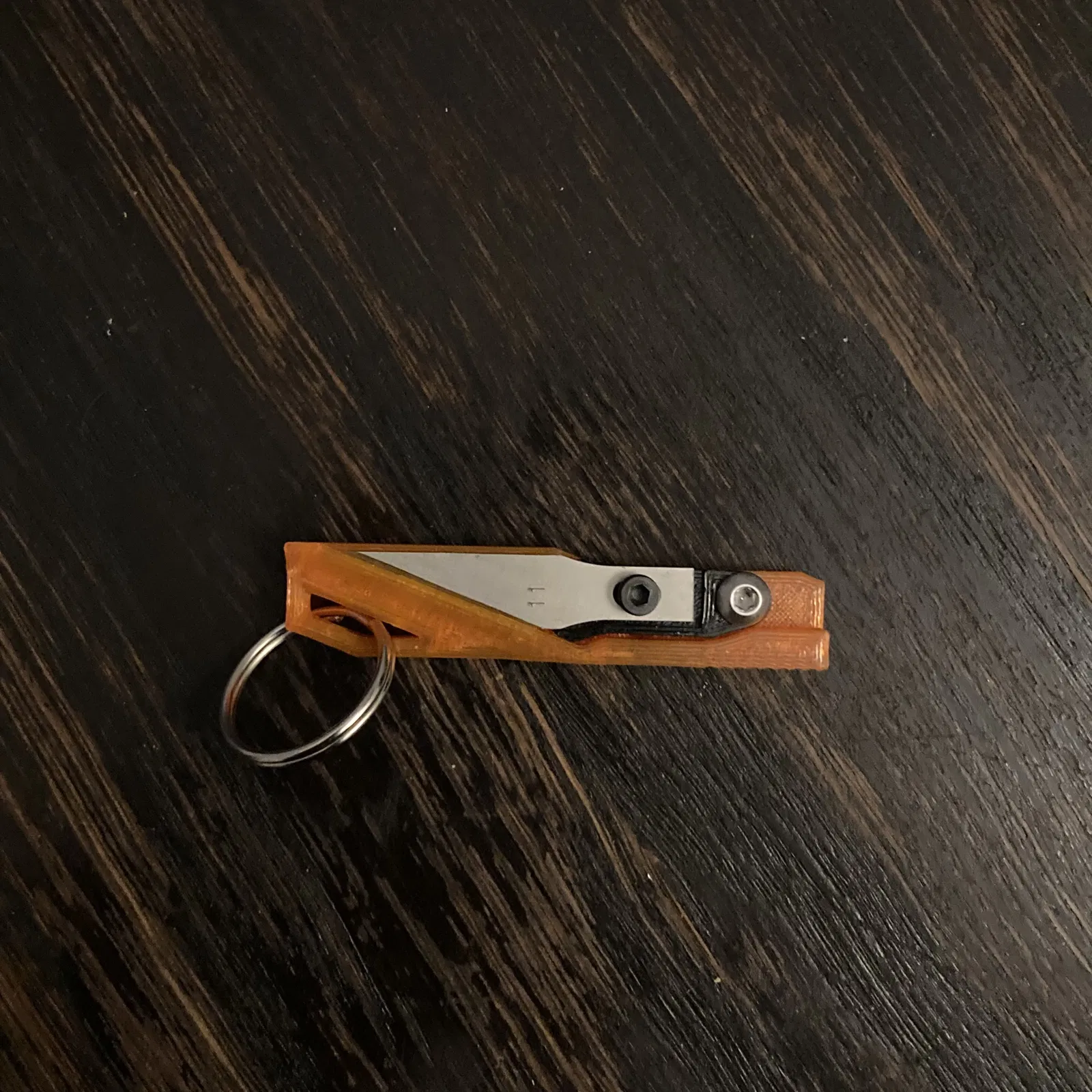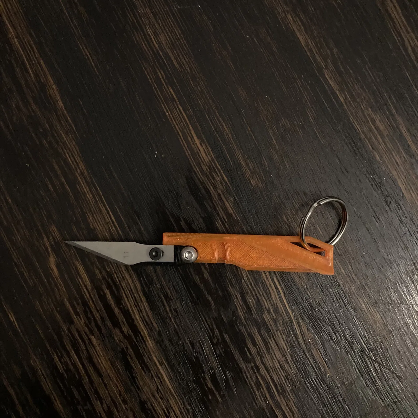 Dao gấp siêu nhẹ đơn giản, có thể móc khóa, dùng lưỡi dao X-acto N.11. In không cần support, độ dày lớp 0.10mm. Cần 1 lưỡi dao X-acto, 2 con vít M2.5x4 và M3x6 để lắp.