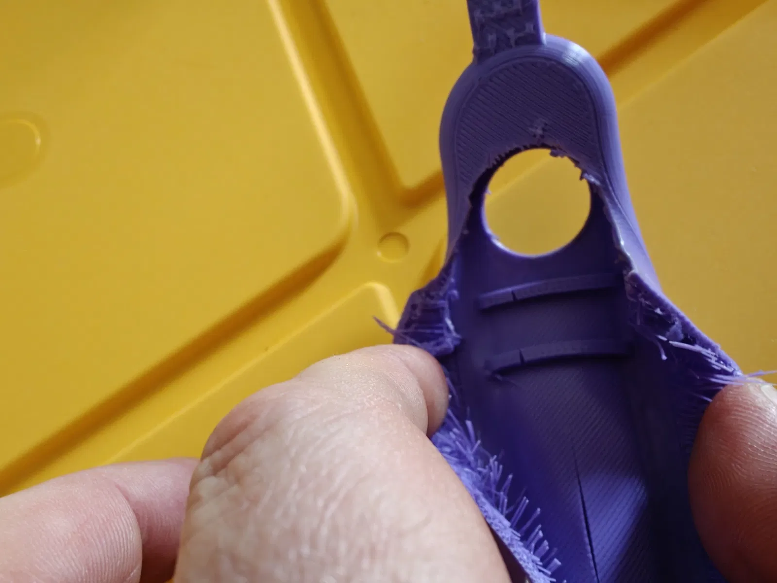 Bản thử nghiệm giờ đã khá tả tơi rồi. Tôi đã cắt nó ra để xem cách bộ phận bên trong được in như thế nào. Việc này cũng cho phép bạn nhìn thấy "van răng cưa" đó.