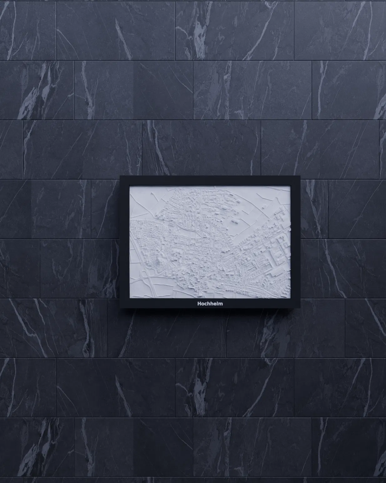 Lưu lại vẻ đẹp cảnh quan thành phố Hochheim với mô hình địa hình 3D thu nhỏ này! Mô hình được thu nhỏ từ khu vực địa lý khoảng 2.392 km x 1.672 km thành kích thước 170.5 mm x 119.5 mm, lý tưởng để trang trí hoặc giáo dục.