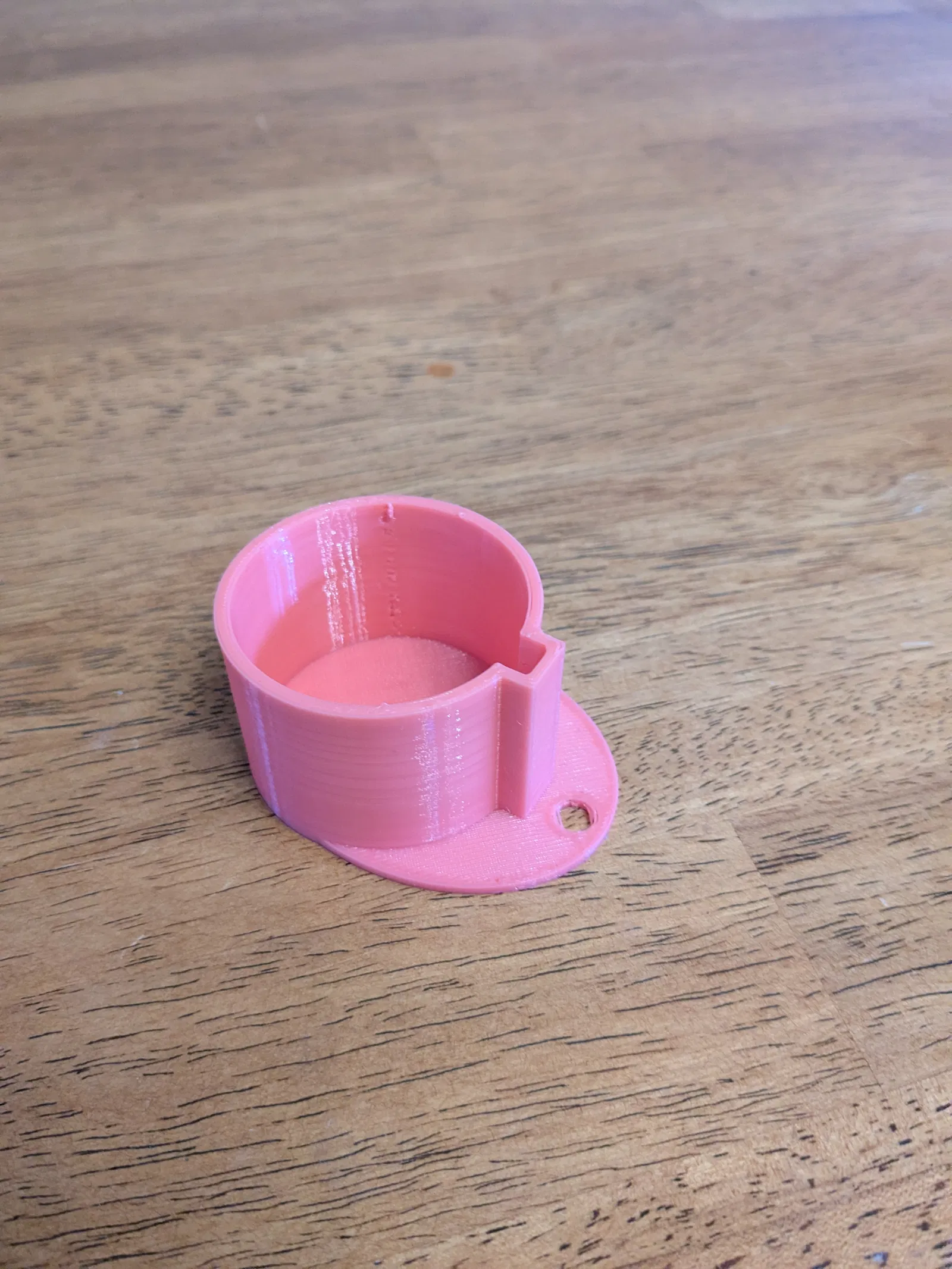 Thiết kế này là để xài một đoạn dây hoặc dây thừng cột vào cái nắp chống bụi (luồn qua cái lỗ rõ ràng đó), rồi quấn mấy vòng đầu kia quanh dây sạc và cột lại. Lúc nào muốn sạc thì tháo nắp ra. Nếu nó mềm mại thì sẽ không làm trầy xe đâu. Mình đã xài Ninjaflex (shore 85a) và cả cái này cho cảm giác mềm như cao su vậy đó. Độ co giãn của vật liệu dẻo giúp nó bám chắc vào đầu dây sạc khi không xài.