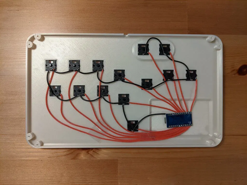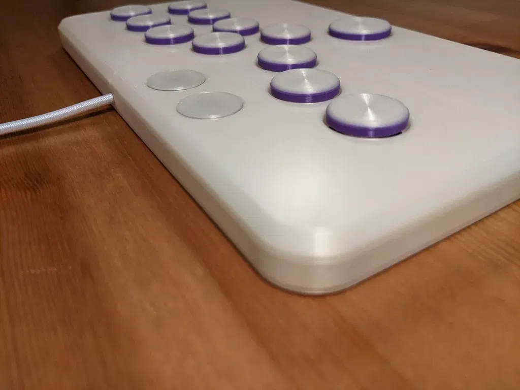 Đây là một fightstick có thiết kế hitbox-layout thấp. Nó sử dụng công tắc bàn phím cơ học Kailh low-profile (choc v1). Nên được in với độ cao lớp là 0. 20mm. In mà không cần hỗ trợ. Tôi đã sử dụng một bản sao Arduino Pro Micro, nhưng nhiều bo mạch khác cũng nên phù hợp. Để gắn tấm đáy, tôi đã sử dụng vít gỗ 3x10mm. Mã Arduino: