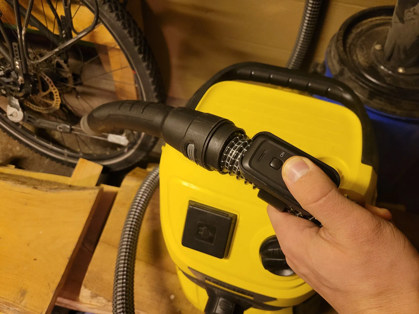 Do tui hay xài đồ pin trong xưởng nên không có vụ cắm điện máy hút bụi để bật máy được. Nên tui mới tìm cái remote điều khiển, mà giá đâu đâu cũng bắt đầu từ 80,-€ (mấy hãng như Metabo, Festool, Bosch, Milwaukee)