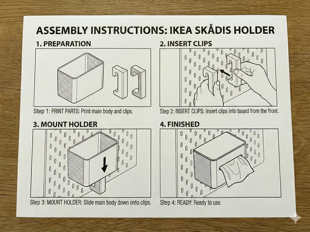 Chán mấy cái phụ kiện Skadis bị gãy chốt hay phải in có support phức tạp lắm phải không? Bộ Mount Skadis Đa Năng này được thiết kế lại từ đầu để trở thành giải pháp gắn đồ bền bỉ và dễ in nhất cho bảng pegboard IKEA Skadis của bạn.