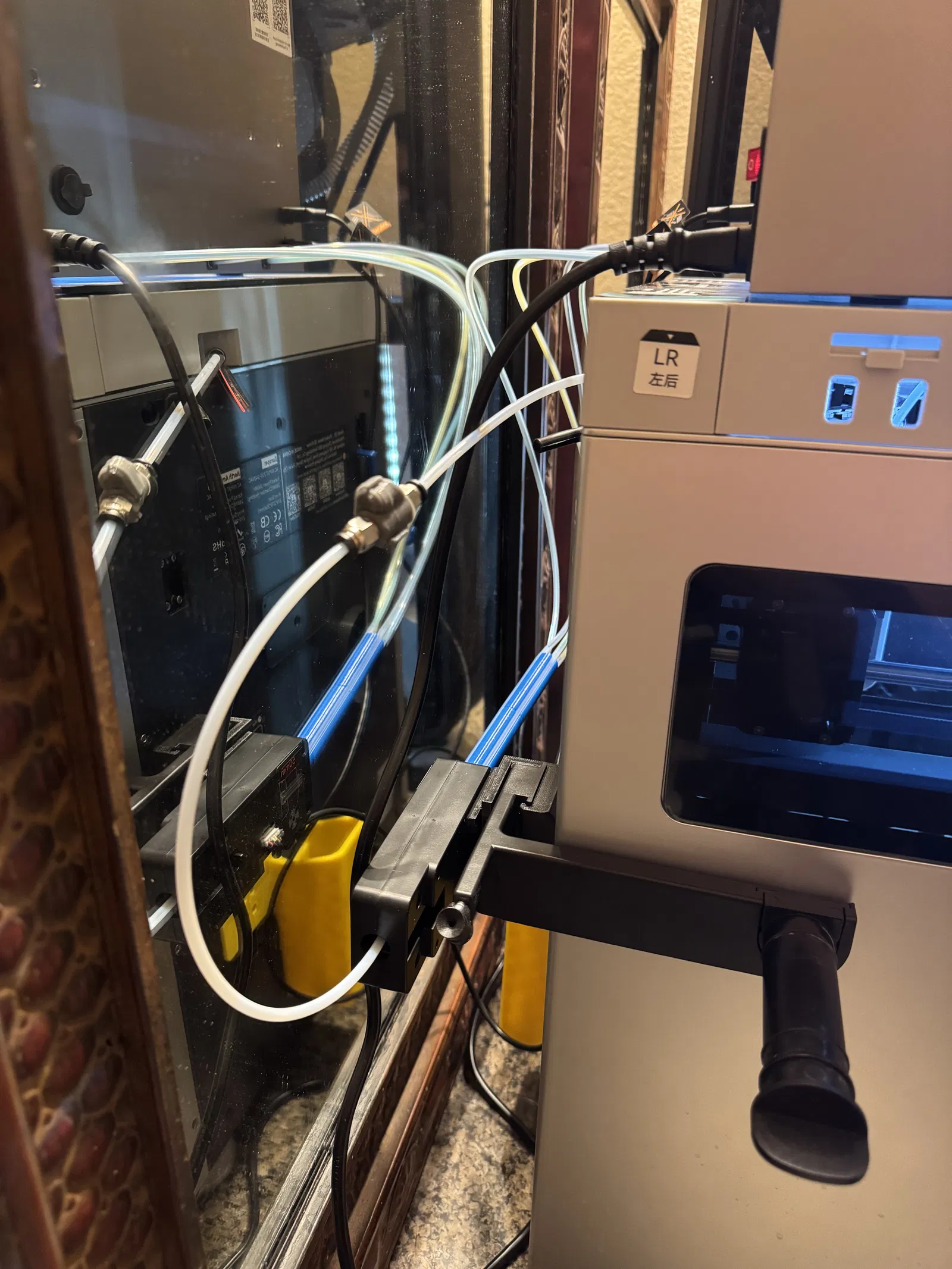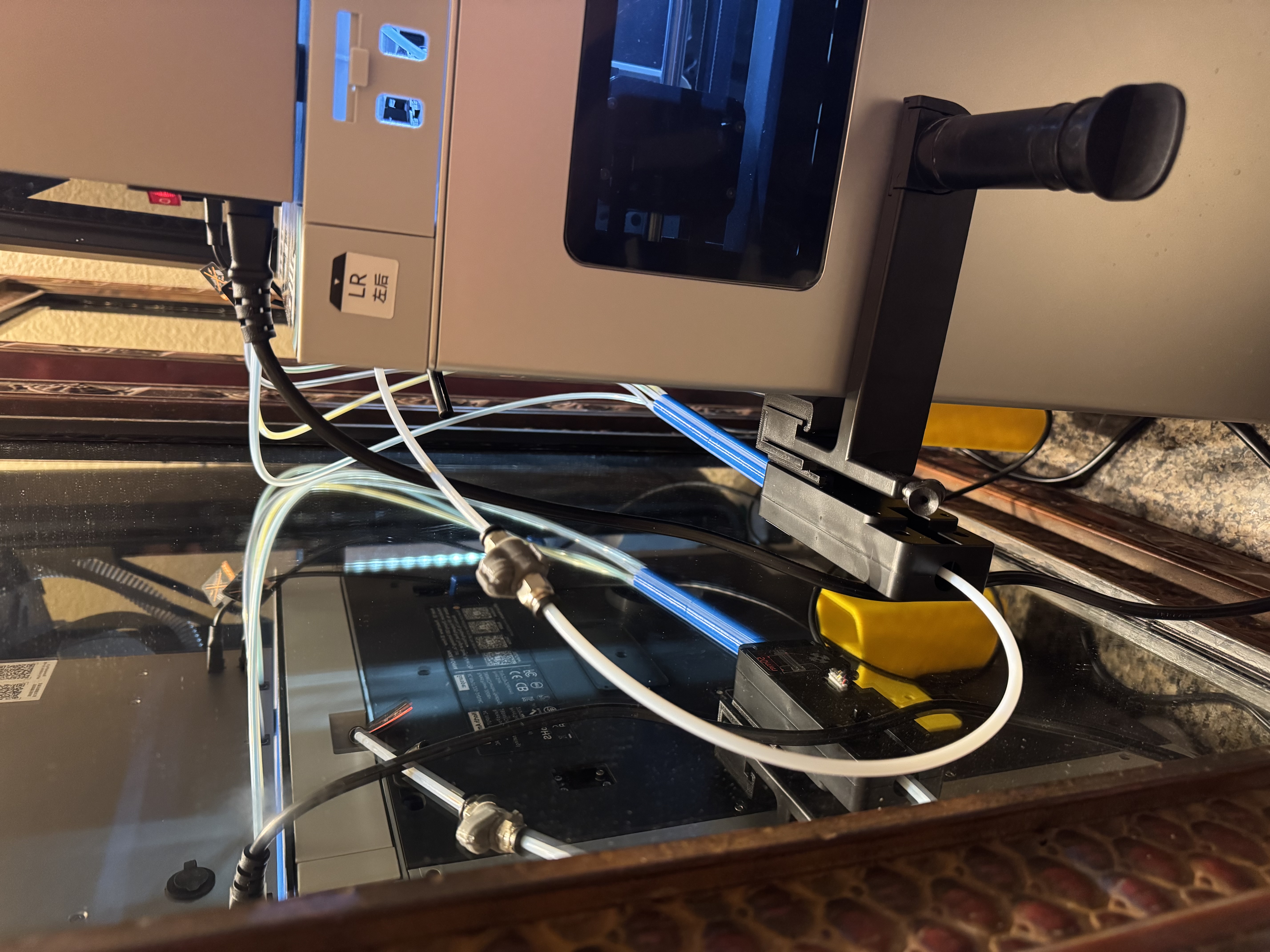 Do xoay cái bracket cho bộ chia Q2 Box 4 in 1 thành ngang để 4 ống PTFE đi vào manifold có bán kính cong nhỏ hơn và đường ‘thẳng’ dài hơn trước khi tới manifold. Những người khác thấy hướng này đã khắc phục được lỗi nạp filament. Hôm nay bộ phận hỗ trợ Q2 cũng vừa chỉ cho tôi/đề xuất hướng tương tự. Lưu ý: Bạn sẽ cần một ống PTFE ra dài hơn từ bộ chia/manifold để giữ bán kính cong của bộ phận đó ở mức chấp nhận được. Tôi đã dùng một khớp nối nhanh (quick disconnect) khác để nối ống PTFE ban đầu và một đoạn nối thêm để làm được điều này. Cảnh báo trước - sợi filament của tôi đôi khi bị kẹt tại điểm nối, tôi sẽ nâng cấp ống PTFE nối thêm của mình (2.5x4 mm như trên Prusa) lên 3 mm ID mà QIDI nói họ đang dùng trên Box xem có giúp ích không, hoặc tìm giải pháp tốt hơn để nối chúng lại. Bạn có thể thay thế toàn bộ bộ phận này nhưng tôi thích việc có thể chạy filament từ cuộn ngoài vào hệ thống (như TPU mà bạn không nên chạy trong Box) nên tôi sẽ cố gắng cải thiện điểm nối đó.
