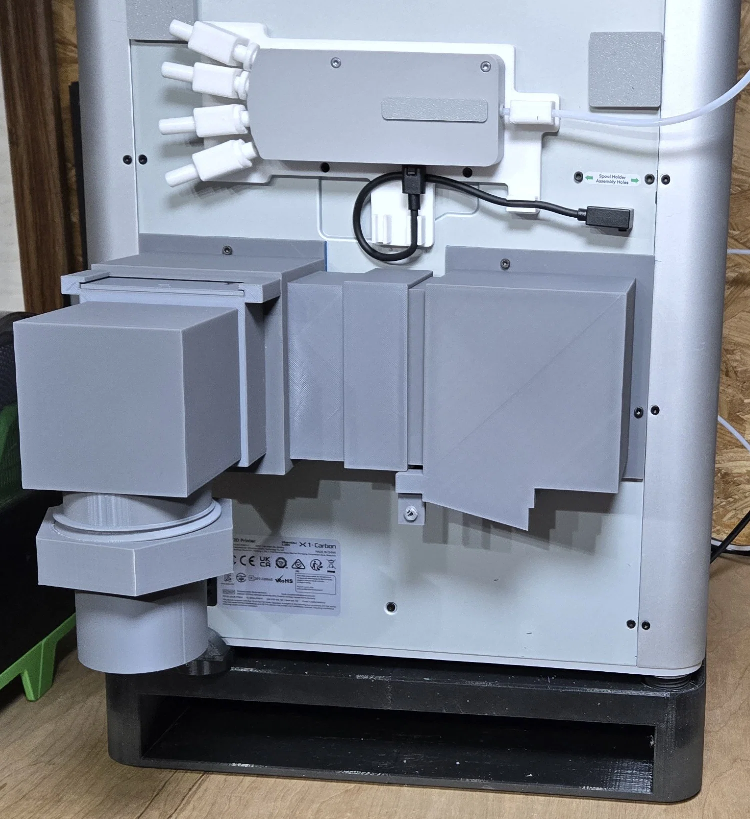 Bây giờ cái bộ của tui là có cái đế đệm dưới con X1C, nên có thể bạn phải scale nhỏ cái khay chứa phân theo trục Z xuống.