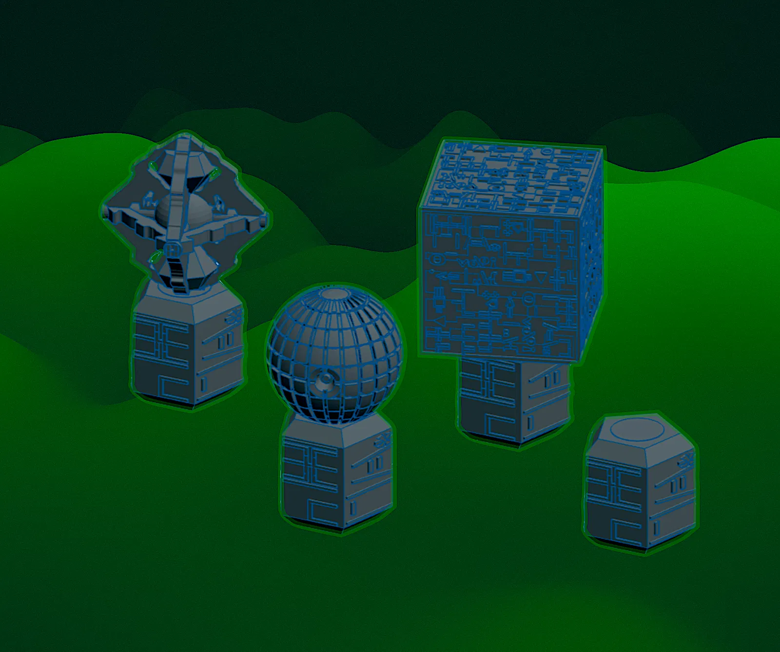 Cả một dàn núm vặn "cybernetic" và "geometric" này sắp sửa tràn tới sàn nhảy để "assimilate" DJ và khiến mọi người phải "bust a groove" đó nha. Đây là bản "remix" từ các mẫu tàu vũ trụ board game, được chỉnh sửa để cầm nắm tốt hơn, với phần đế hình ngũ giác độc đáo.