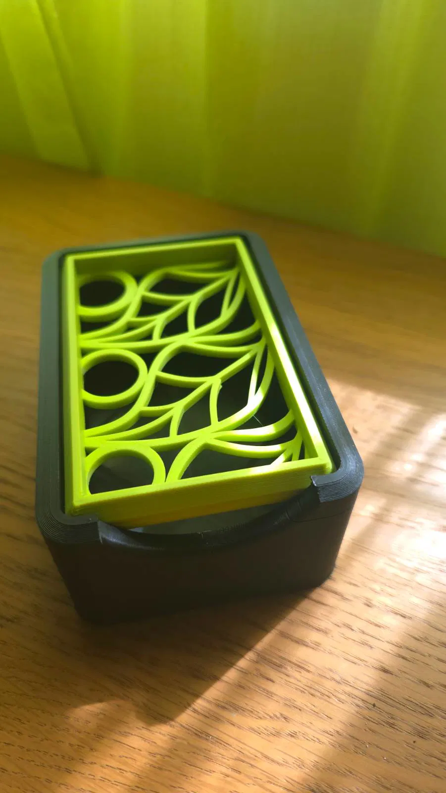 Sau khi in xong, hãy đặt phần nắp có họa tiết lá cây khớp với phần đáy hộp đựng xà bông, rồi ấn nhẹ để đảm bảo vừa vặn.