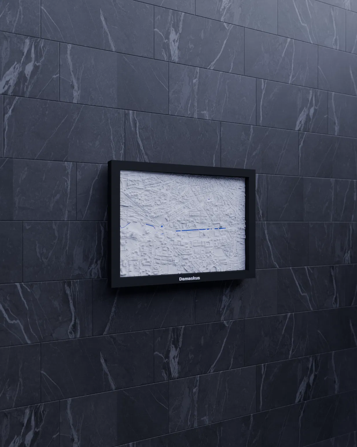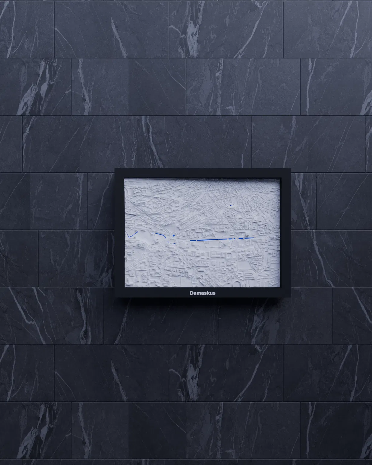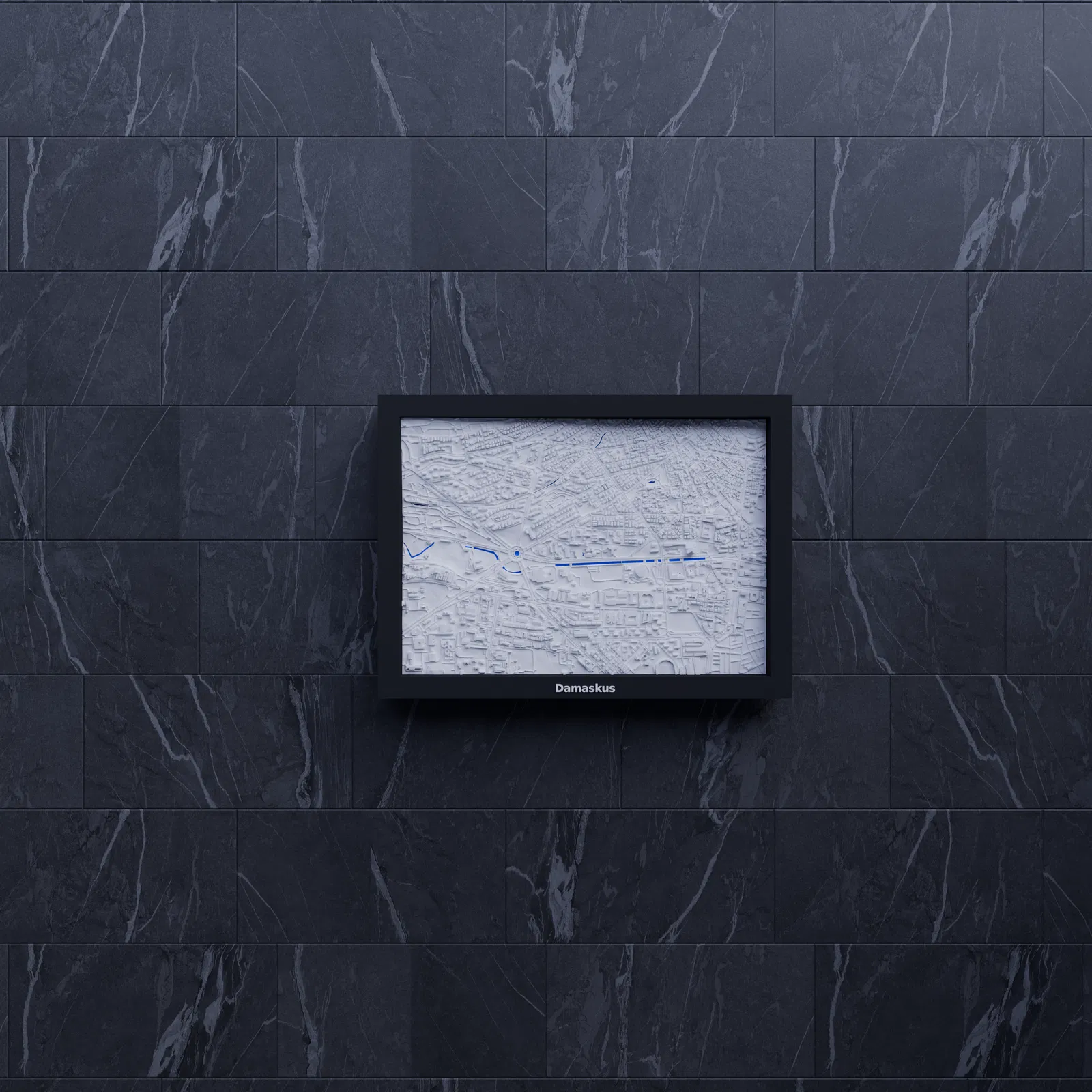 Nắm bắt vẻ đẹp của cảnh quan thành phố Damaskus với mô hình thu nhỏ dạng địa hình 3D này! Mô hình được thu nhỏ từ khu vực địa lý khoảng 2.816 km x 1.965 km thành kích thước 170.5 mm x 119.5 mm, lý tưởng cho giáo dục, trực quan hóa kiến trúc hoặc trang trí.