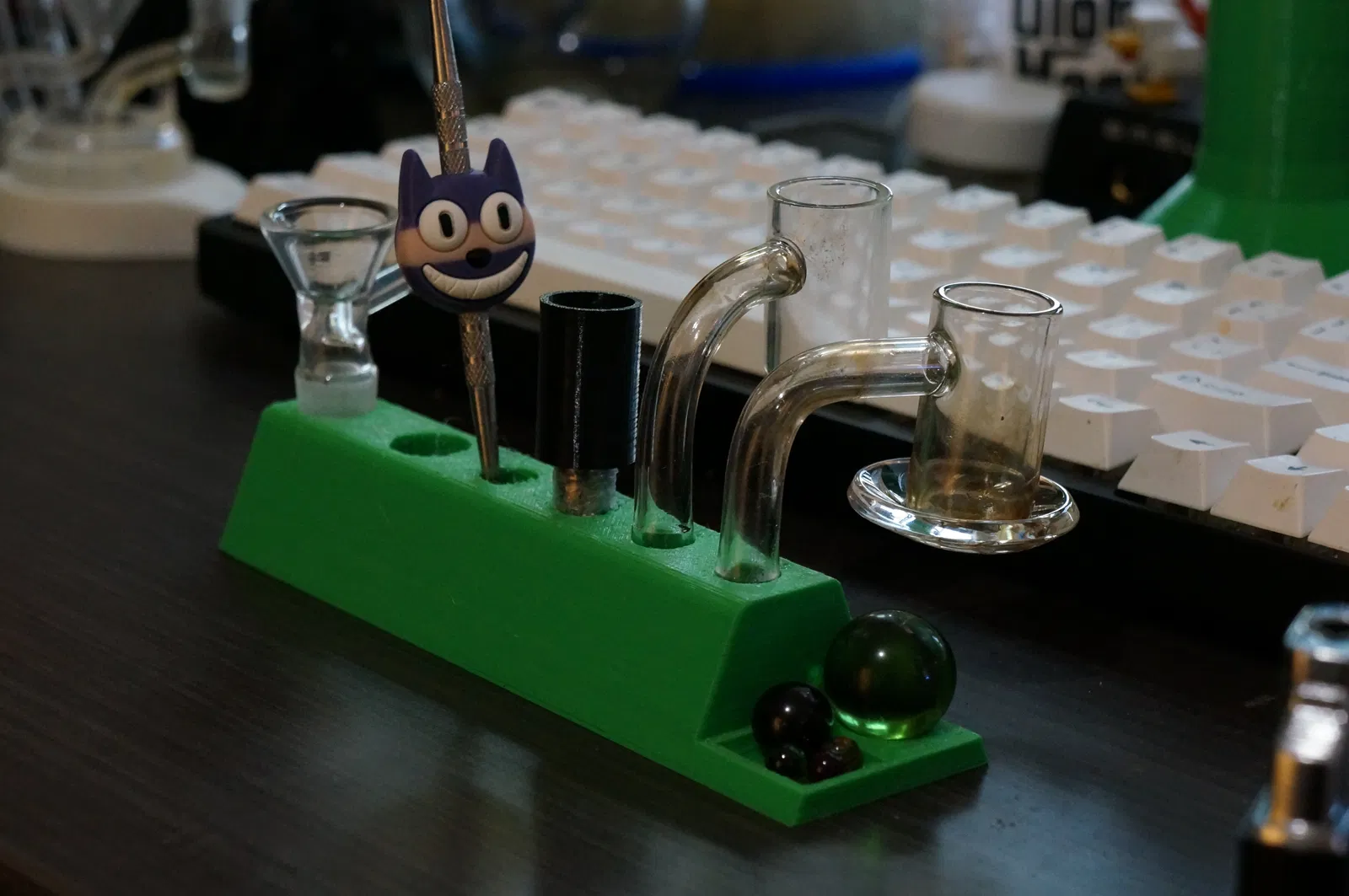 Khay nhỏ xinh để sắp xếp gọn gàng mấy món đồ "thảo mộc" của bạn. Có lỗ cắm dabber, chén, khay đựng Terp Pearls và marble carb cap. In thêm lớp và infill cho chắc chắn, đỡ lung lay nha!