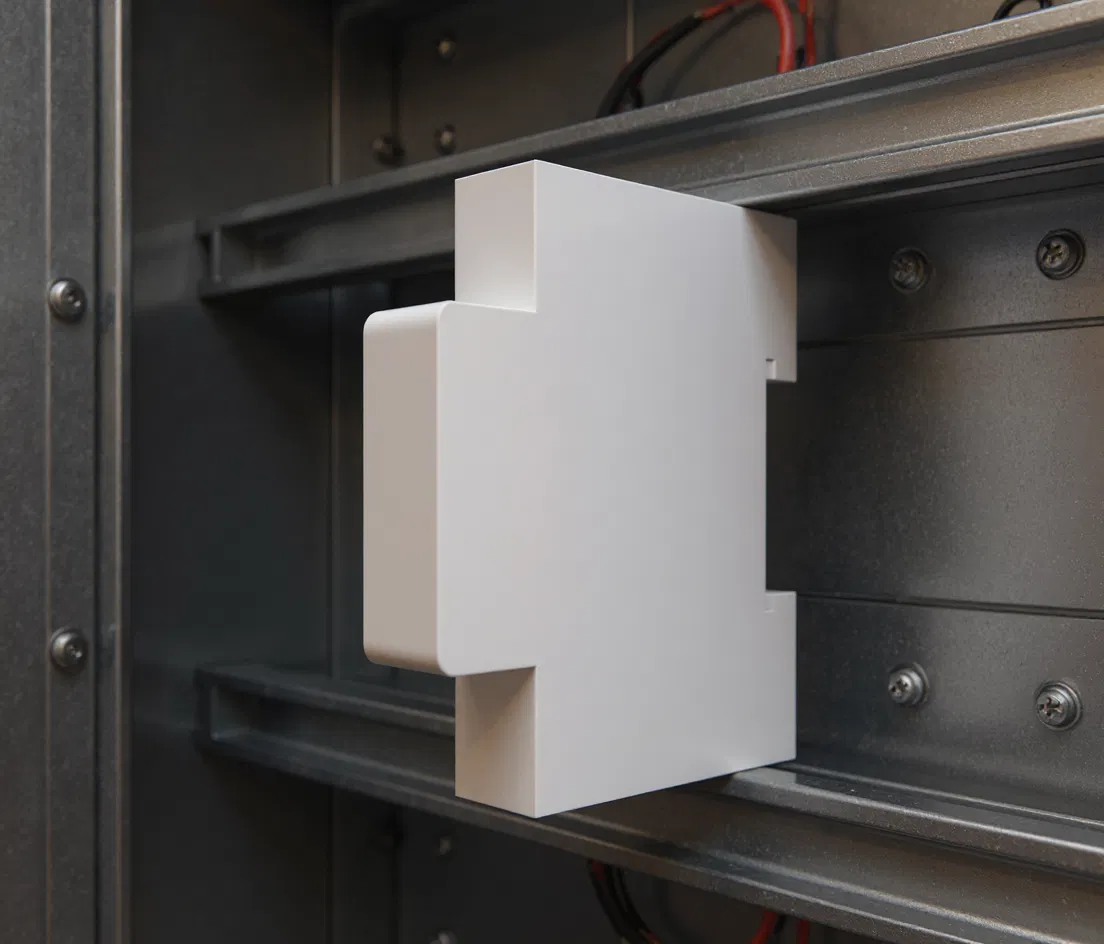 • Kẹp tích hợp: Được thiết kế để vừa với ray DIN tiêu chuẩn (ví dụ: ray 35mm).