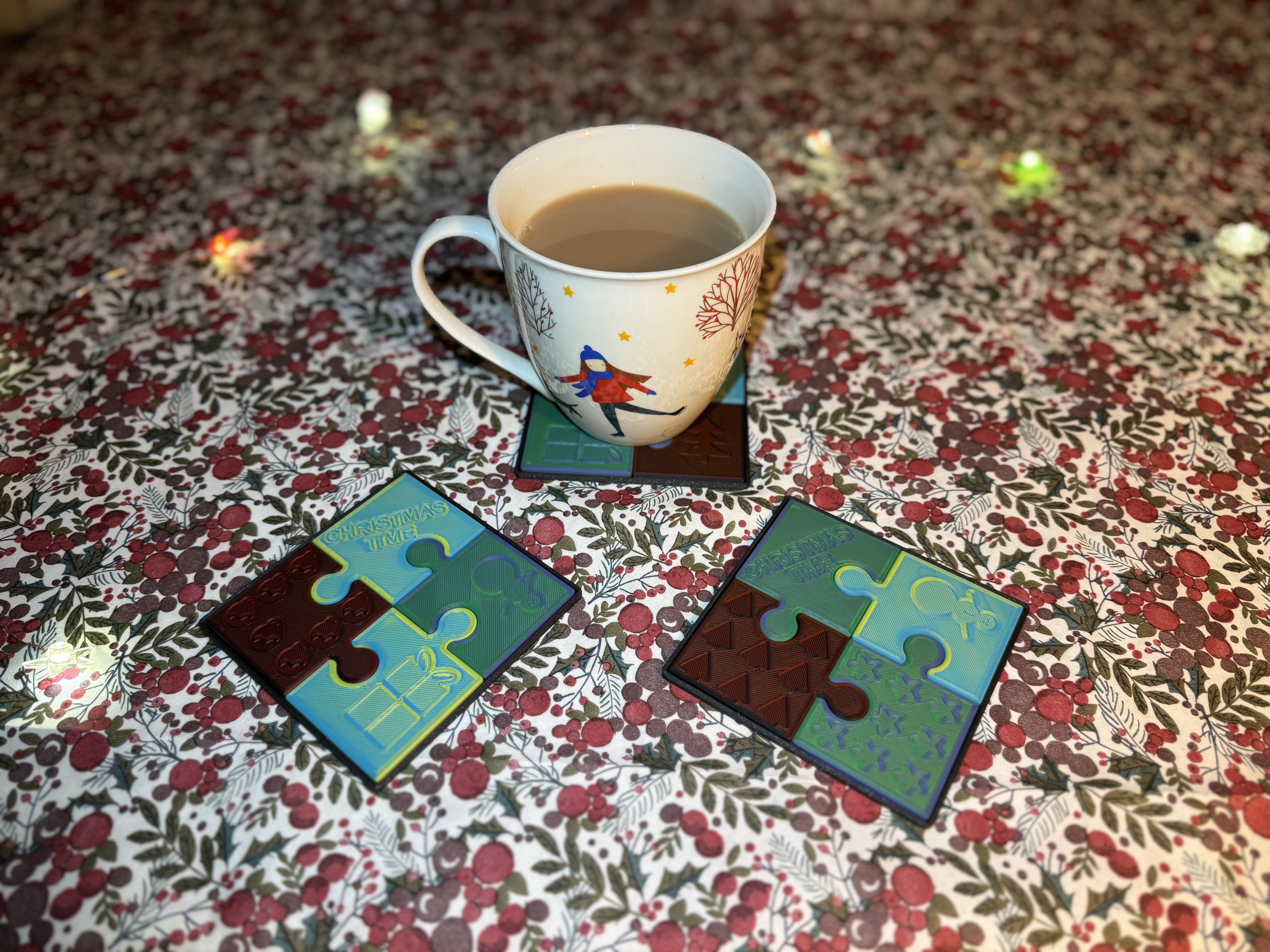 Mẫu đế lót ly có thể thay đổi chủ đề Giáng Sinh, có đế đi kèm. Vừa để ly nước, vừa là món đồ trang trí, vừa giúp bạn giải trí lúc ngồi chơi.