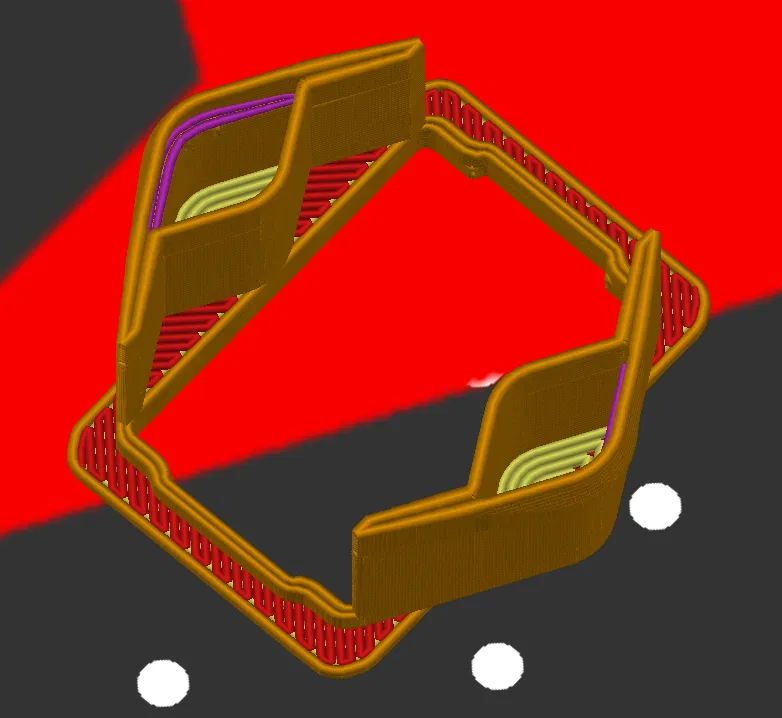 Bạn có thể in với 2mm đáy và 0 lớp trên, kèm theo 1 perimater để có mấy cái trụ rỗng như trong hình nha. In vậy cho nó lẹ với nhẹ nữa.