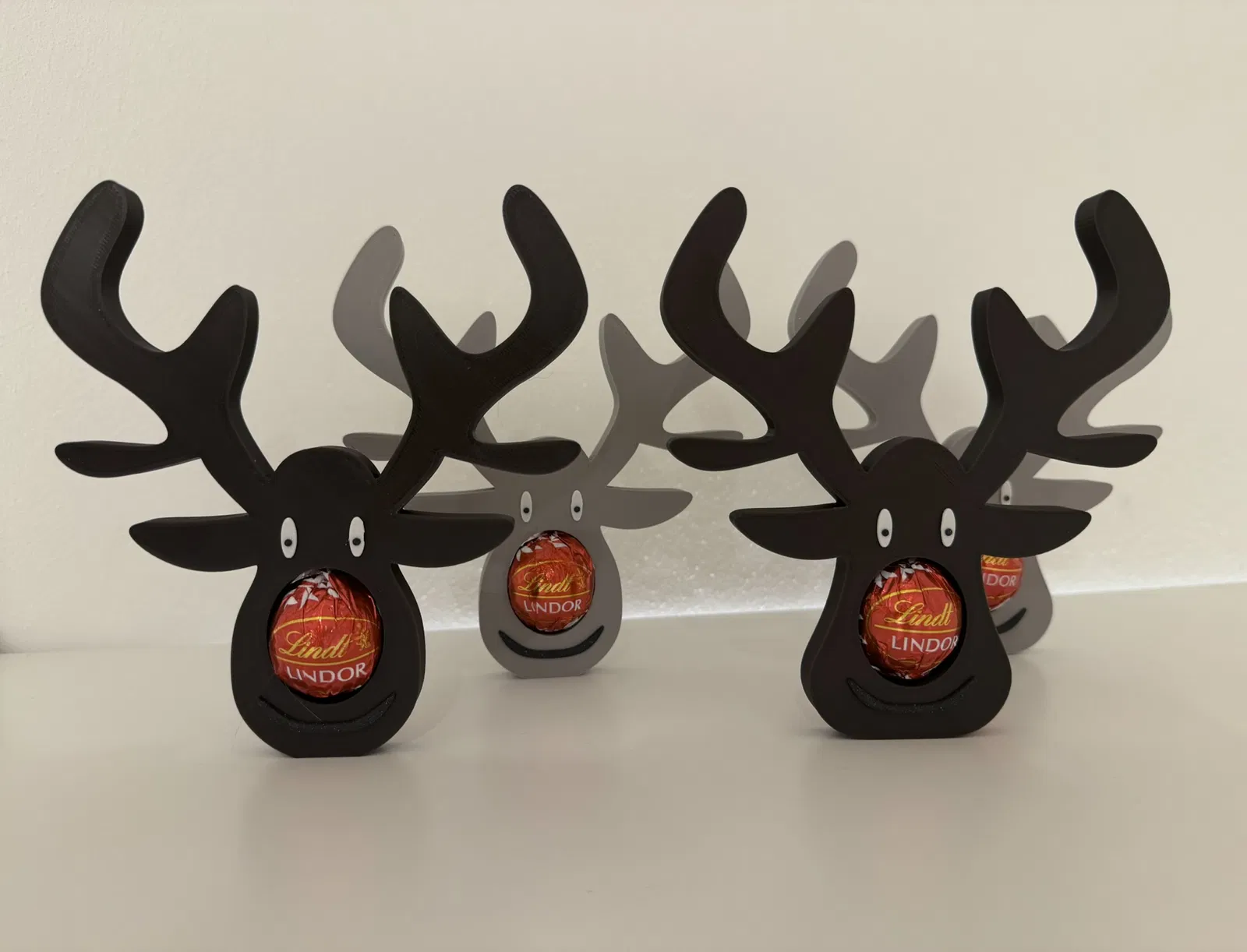 Món đồ trang trí tuần lộc độc đáo, với phần khoang mũi được thiết kế đặc biệt để vừa vặn một viên sô cô la Lindor, biến nó thành chiếc mũi đỏ rực cho ngày Giáng sinh. Có sẵn 2 phiên bản và tệp gốc để bạn tùy chỉnh.