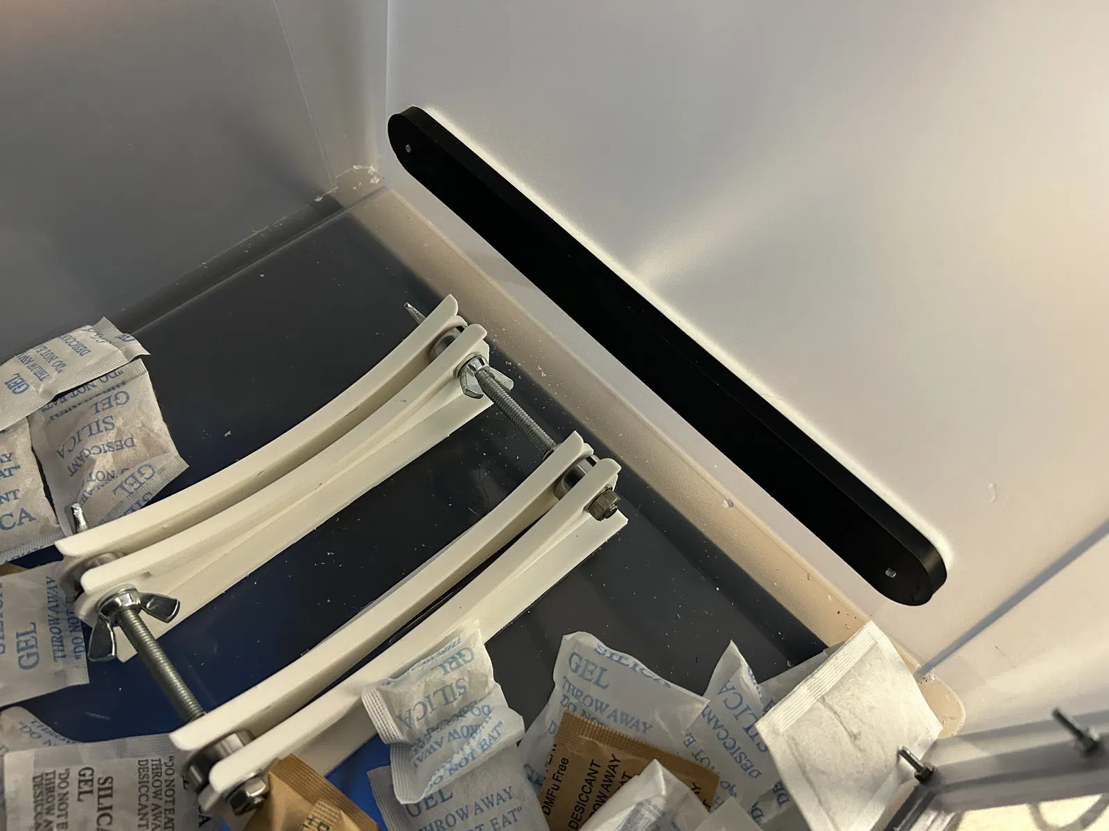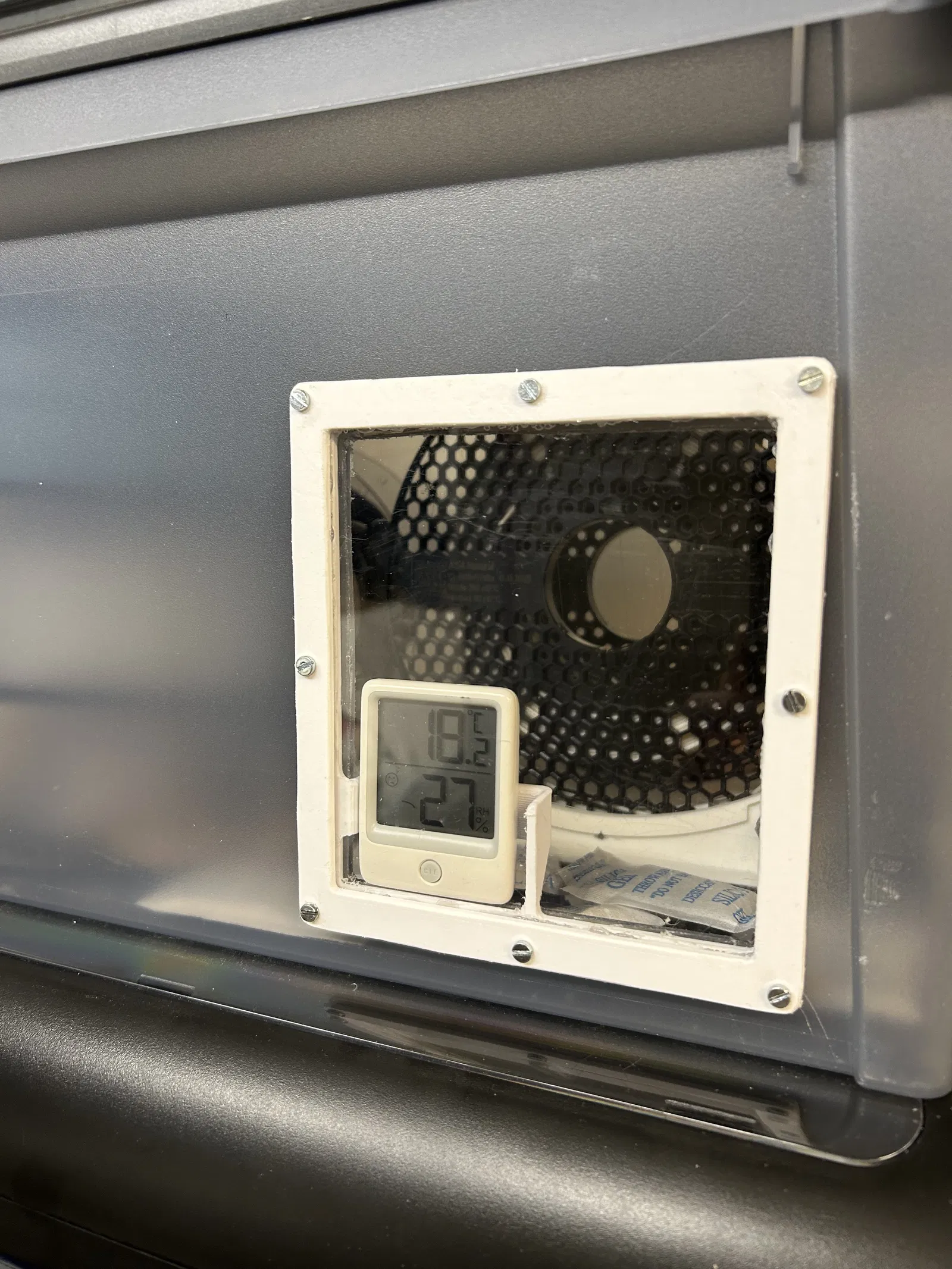 Tôi đã lắp một cảm biến độ ẩm nhỏ chạy bằng pin (bộ đo độ ẩm/nhiệt độ kết hợp từ Clas Ohlson) để theo dõi mức độ ẩm trong hộp chống ẩm.
