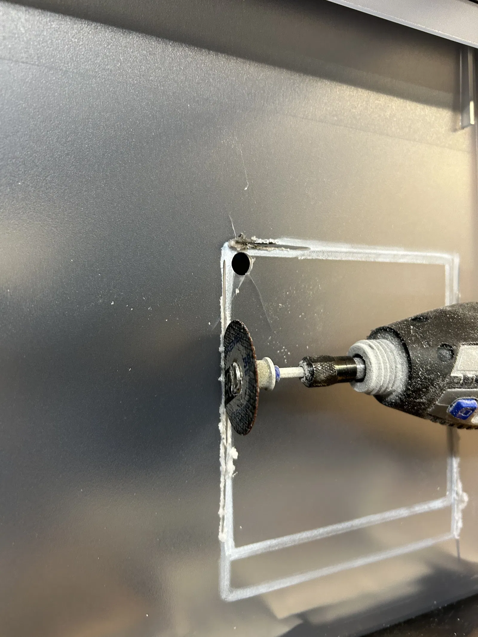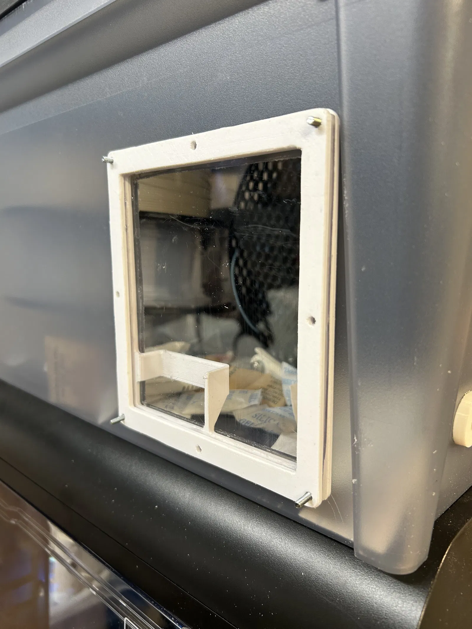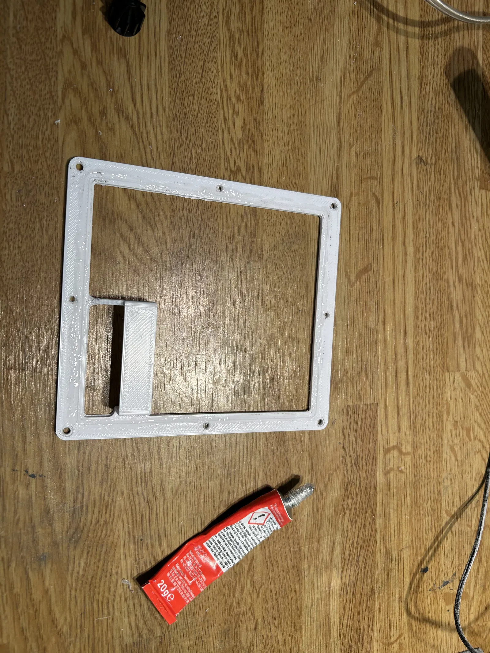 Cuối cùng, tôi đã làm một cửa sổ có giá đỡ đi kèm cho cảm biến độ ẩm. Nó được làm từ 2 bộ phận in và một tấm Polycarbonate dày 2 mm. Cần cắt lỗ trên hộp một cách cẩn thận vì tôi nhận thấy vật liệu ở đó dễ bị nứt. Tôi đã sử dụng Dremel của mình với đĩa cắt lớn để cắt lỗ cho cửa sổ. Cửa sổ được dán và bắt vít bằng ốc M3 vào hộp. Có một rãnh nhỏ trên khung cửa sổ để keo không bị tràn ra ngoài. Khung cửa sổ bên ngoài cũng được sử dụng làm mẫu cho cửa sổ Polycarbonate cũng như cho lỗ cắt và lỗ khoan trên hộp.