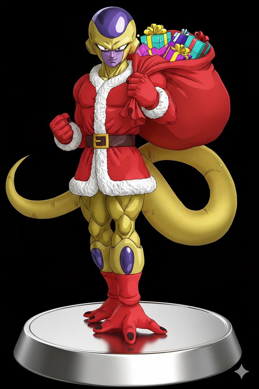 Nhân vật Gold Freezer được tạo bởi AI với bộ đồ ông già Noel. Rất lý tưởng cho mùa Giáng Sinh này.