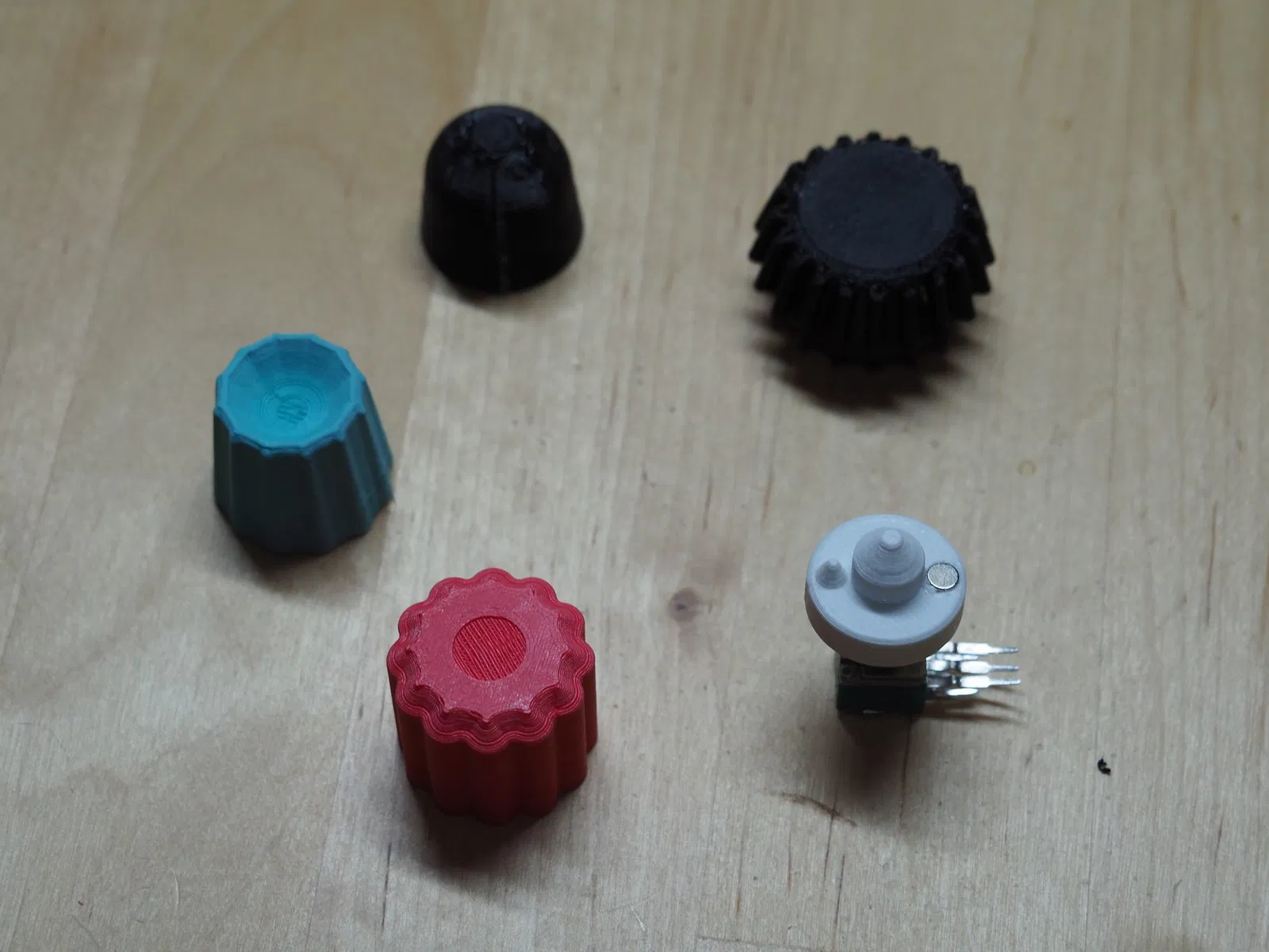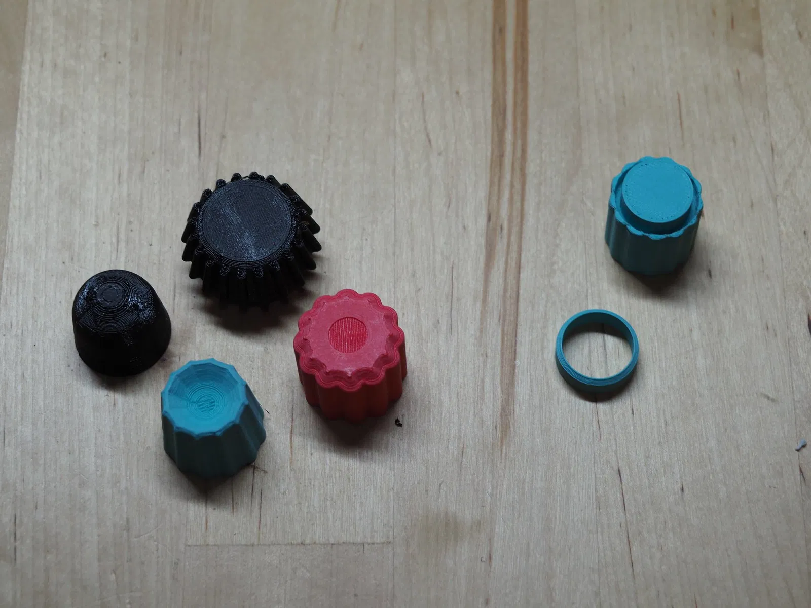 *Các nút được hiển thị: Red PLA, teal PLA, black rounded TPU, black ribs PETG CF