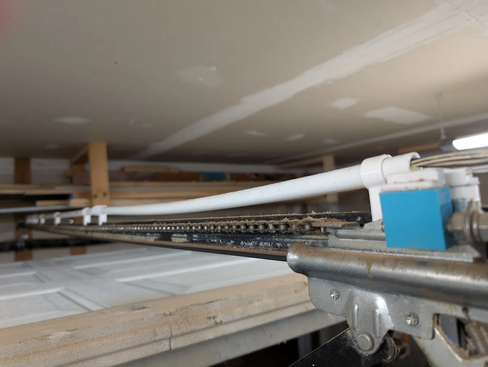 Dùng để luồn ống dẫn 1/4in phía trên bộ đóng/mở cửa gara. Giá đỡ có góc lượn giúp bộ đóng/mở di chuyển êm ái hơn, chân giá đỡ được làm ngắn để siết bu lông chặt hơn. Các vòng lặp được chia đôi để dễ lắp đặt lại mà không cần ngắt dây.