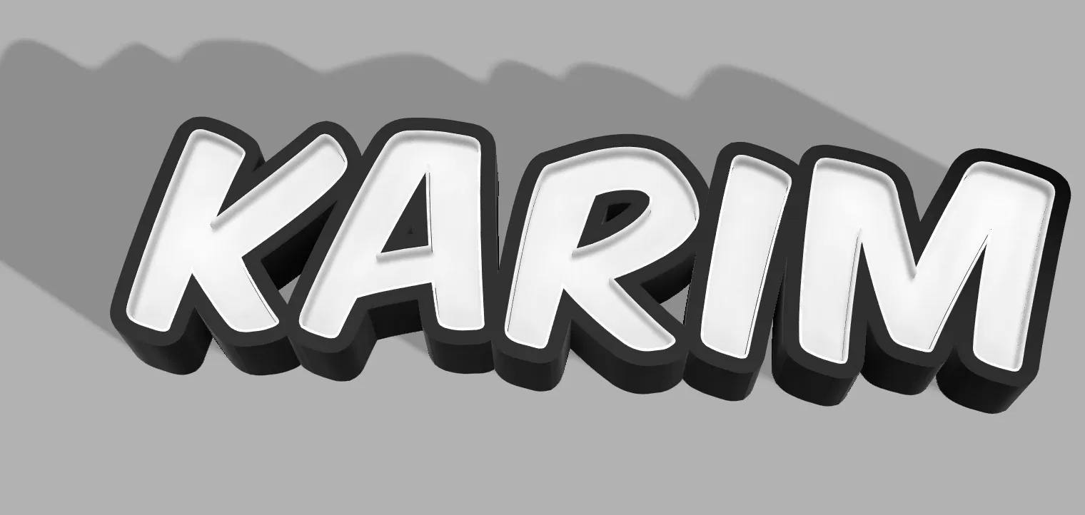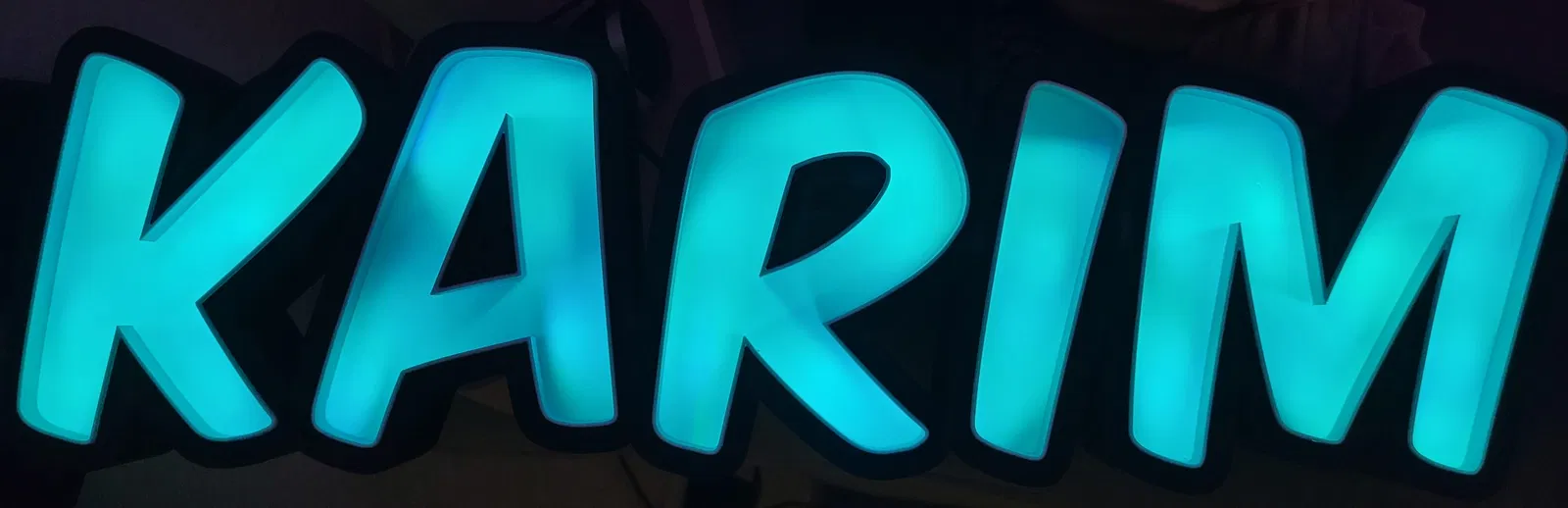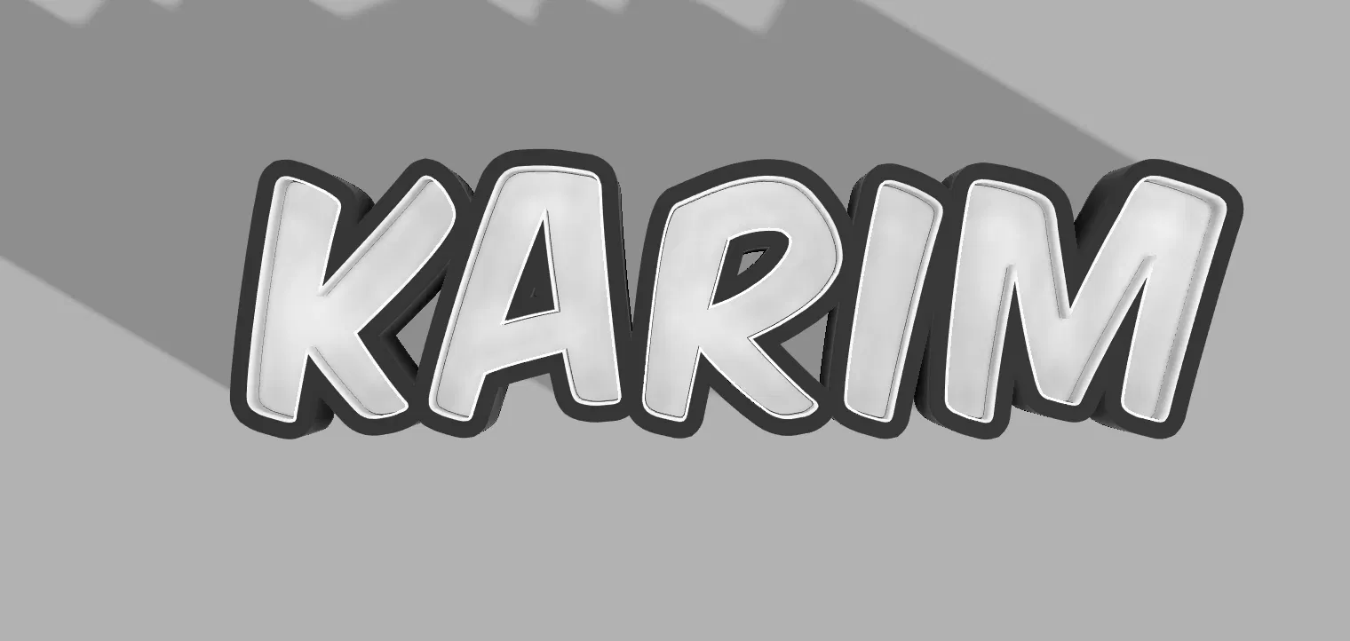 Đèn LED Tên KARIM. Mẫu đèn tên này có hai phiên bản, với độ dày khác nhau là 40mm và 50mm, phù hợp để trang trí nhà cửa hoặc làm quà tặng ý nghĩa. Dễ dàng in ấn với vật liệu PLA phổ biến.