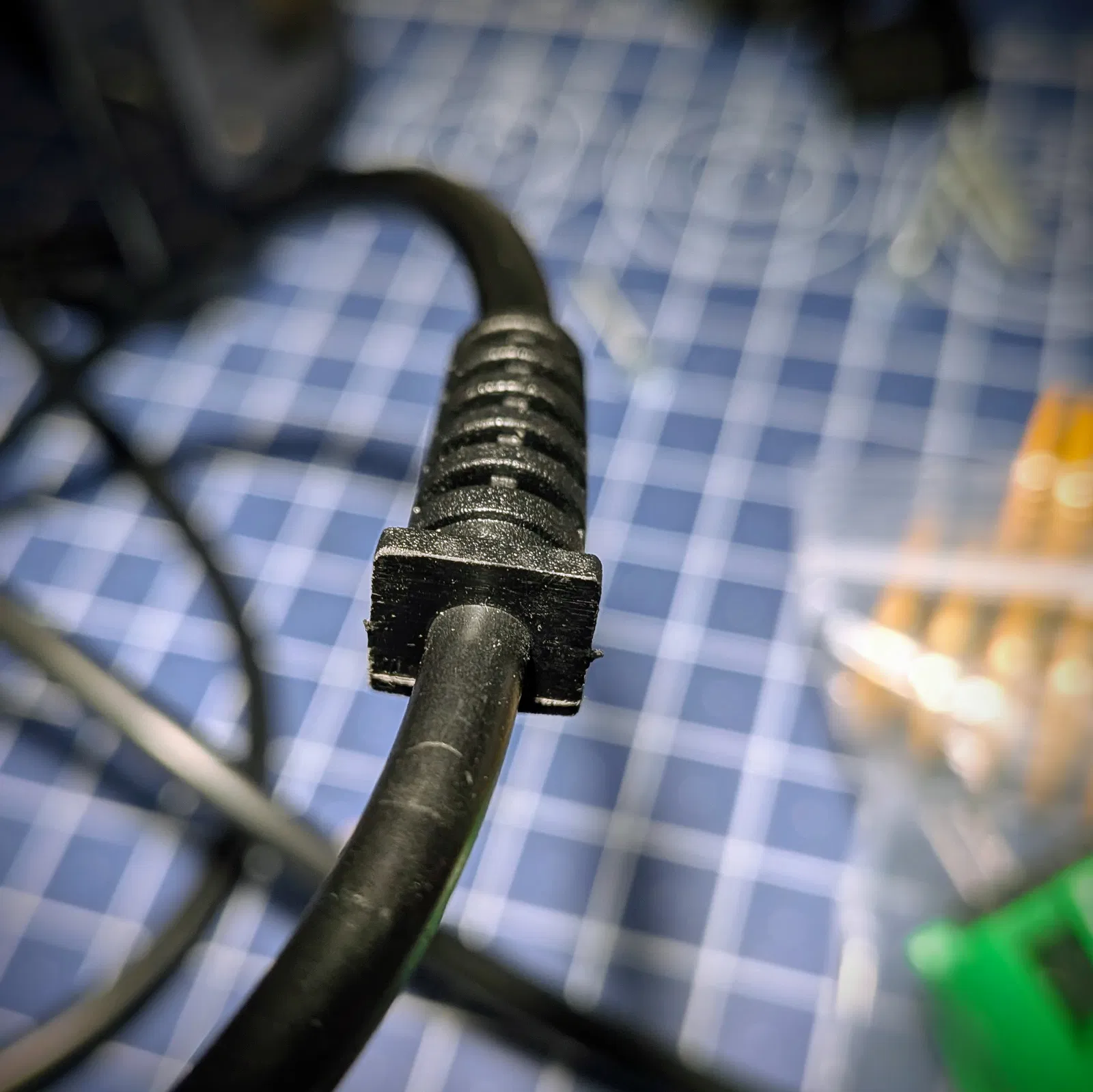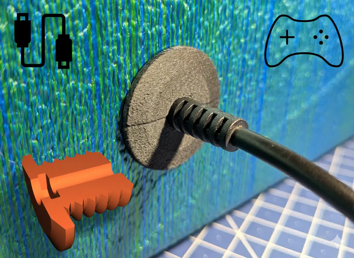 Chặn hoặc ống luồn dây cáp dùng để giữ các loại dây cáp USB, ví dụ như dây cáp cho bộ arcade mua trên Aliexpress. Kích thước lẫy khóa là 8 x 8.5 x 1.6 mm, dây cáp dày 4 mm. Phù hợp cho lỗ khoét 18 mm hoặc 22 mm.