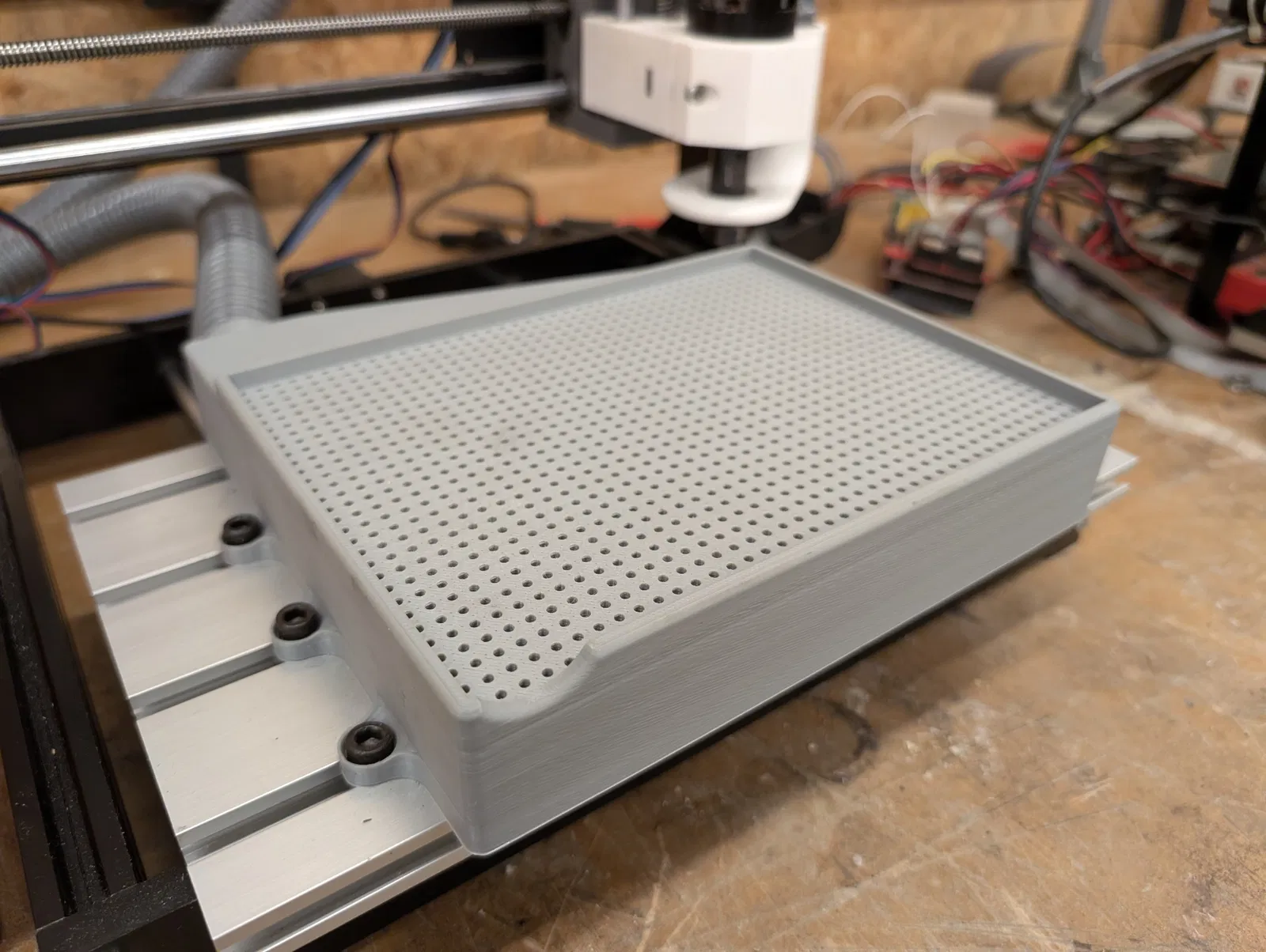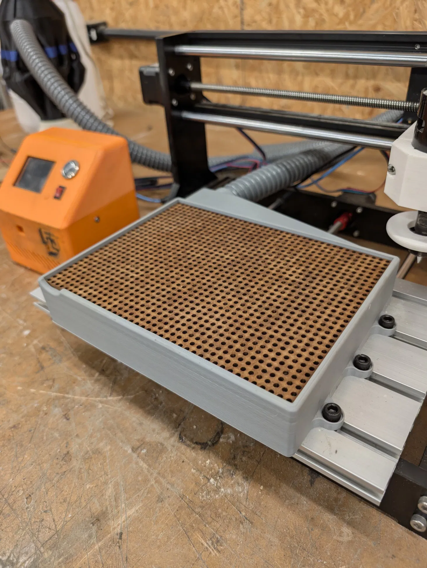 - Có thể đặt một lớp ván lót (MDF, acrylic, hoặc FR4) lên trên nếu cần.