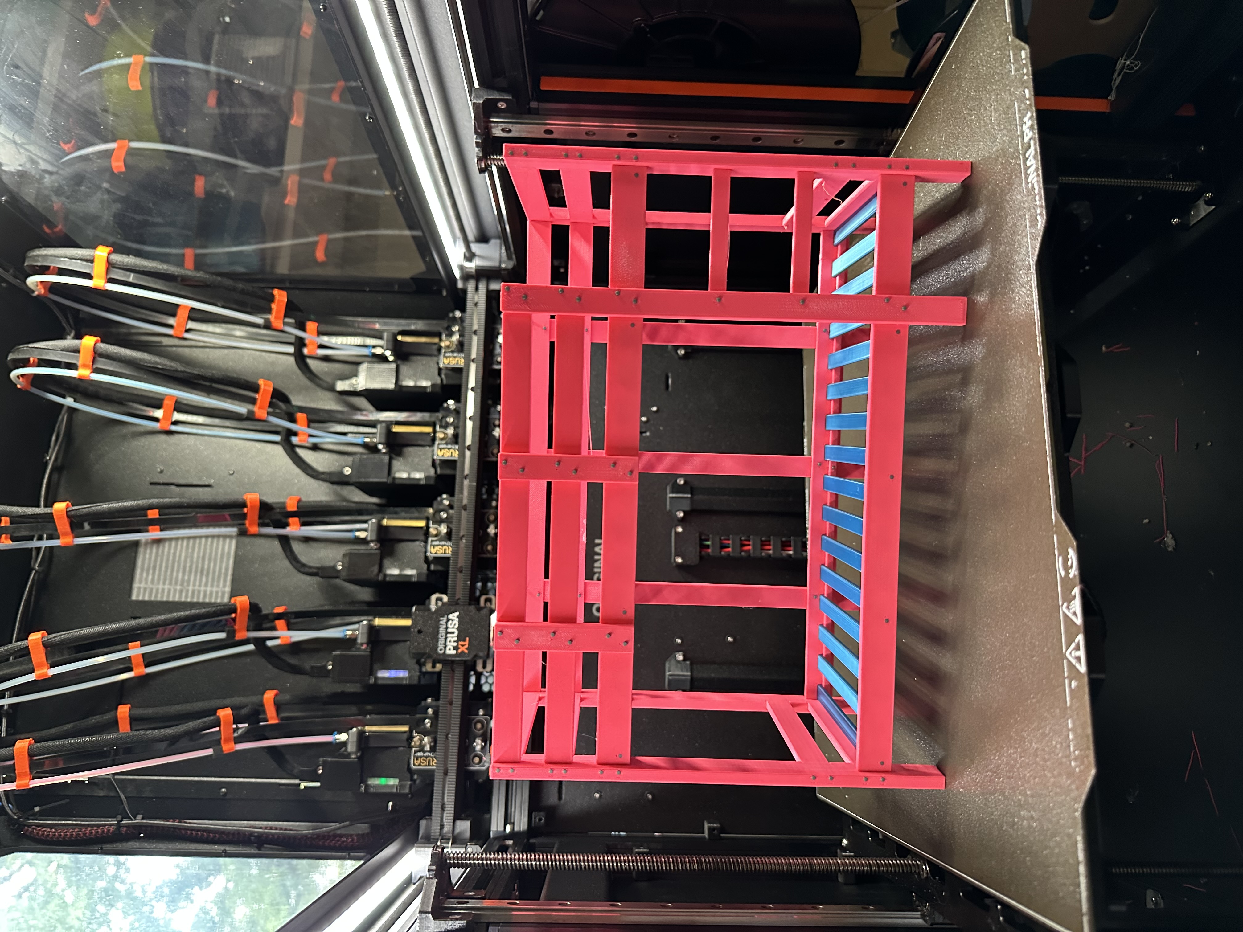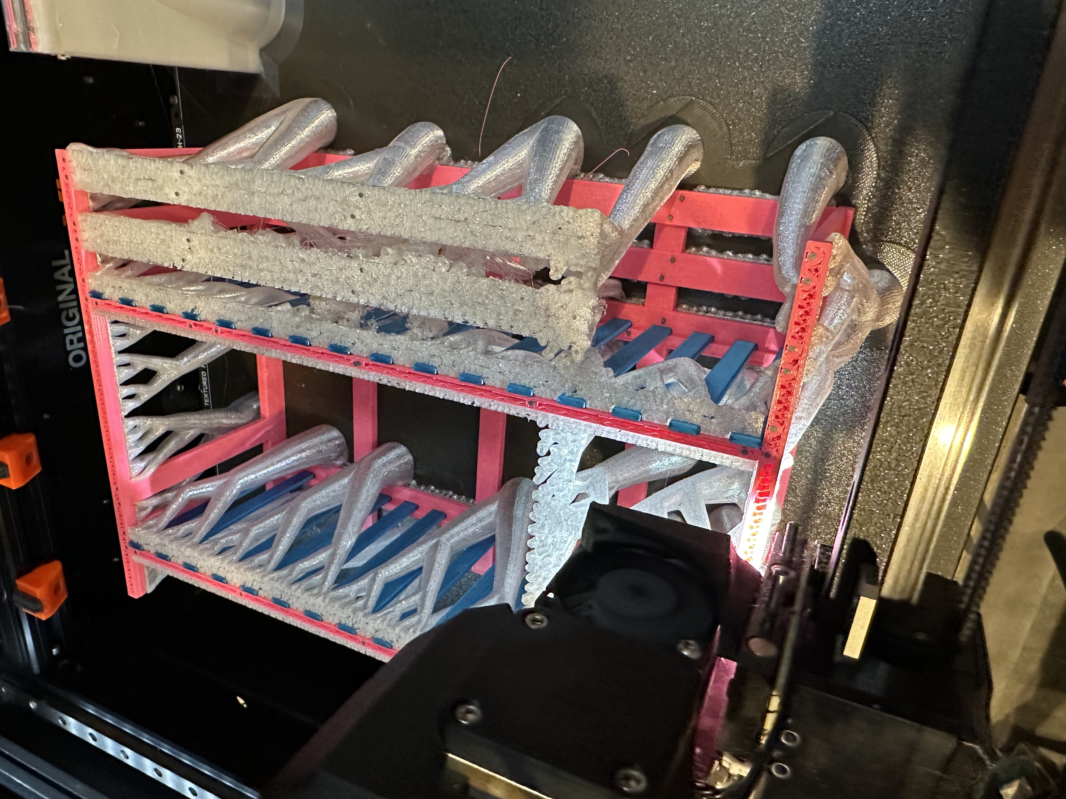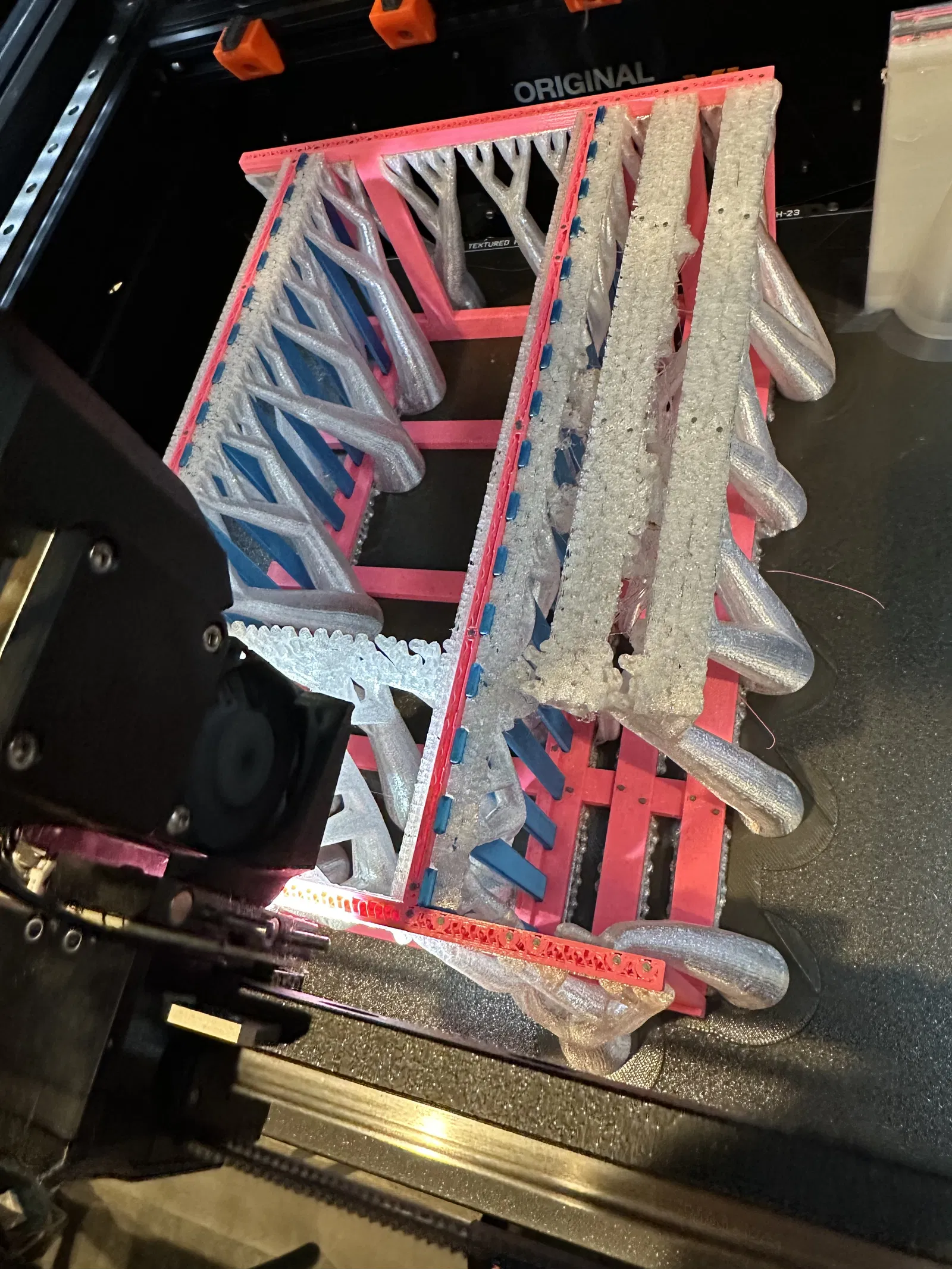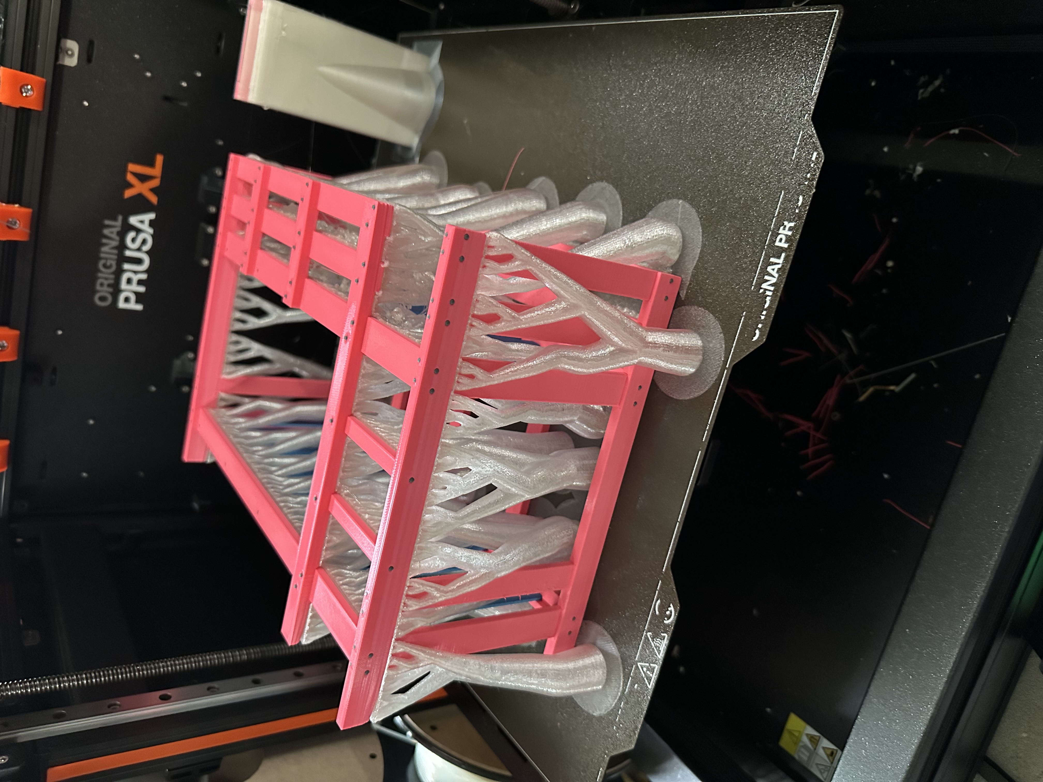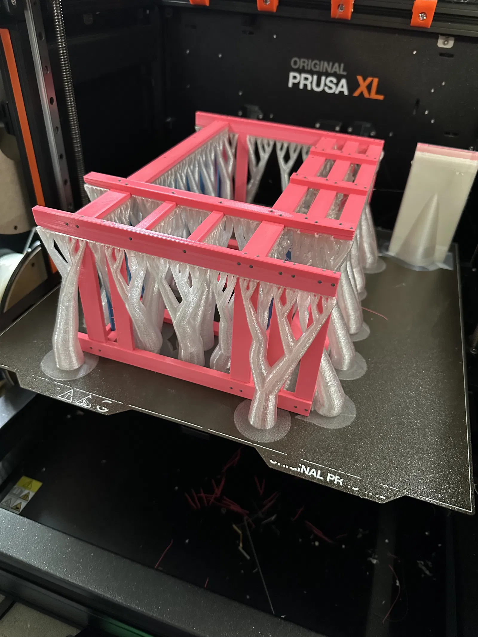 File 3mf này đã được in nghiêng. Lưu ý nếu in nghiêng, bạn phải chìm nó xuống mặt bàn in, nếu không các "ốc vít" lồi ra sẽ khiến mô hình bị nổi lên trên các bộ phận hỗ trợ. Vì đây là bộ phận hỗ trợ không tiếp xúc với PETG để hỗ trợ và PLA cho mô hình nên điều đó không tốt lắm. Tôi đã in cái này trên Prusa XL. Mô hình được cắt lát cho POLAR PETG không còn được sản xuất nữa, loại này sử dụng nhiệt độ bàn in tương tự như PLA. In bằng Polar Coral, Polar Clear PETG (hỗ trợ), Printed Solid Jessie Elixer (Xanh lam), Printed Solid PLA Gray (ốc vít) và một số Printed Solid PLA ngẫu nhiên (tự nhiên) cho cấu trúc tháp lau.