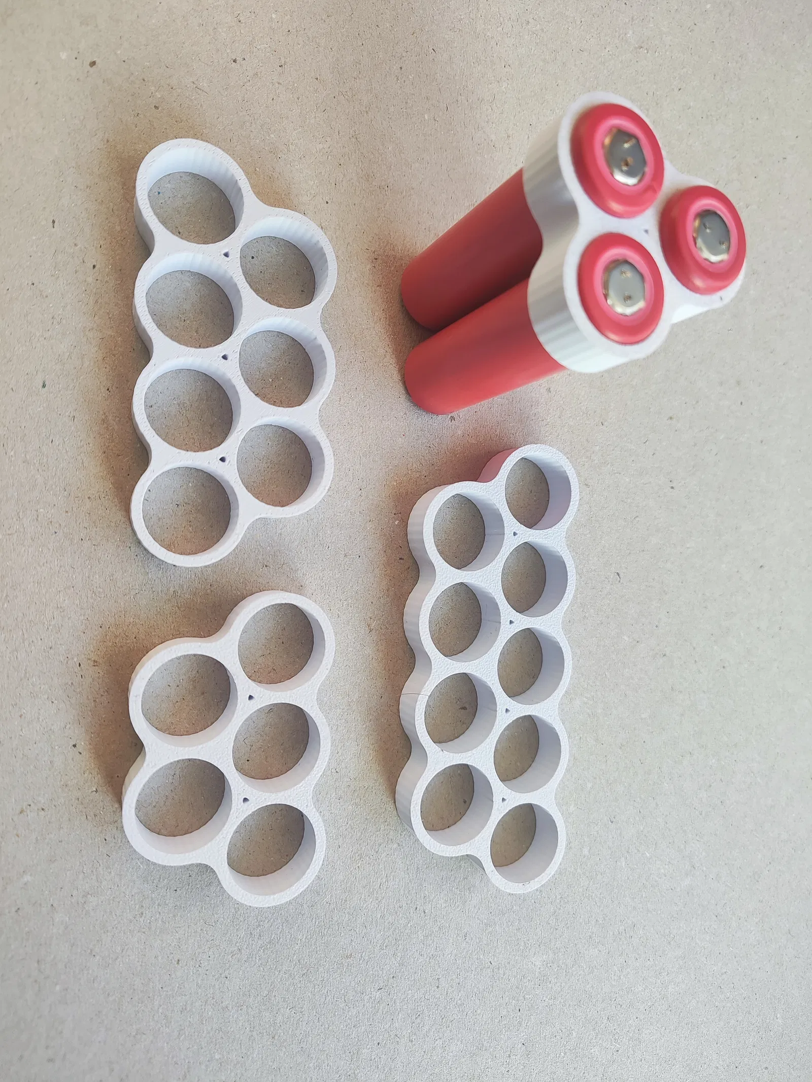 Bộ đế giữ pin 18650 với thiết kế xếp chồng (offset) giúp tiết kiệm không gian tối đa, lý tưởng cho pin xe đạp điện. Bộ bao gồm các đế 3, 5, 7, 9 cell. In bằng PETG, ABS, ASA, không cần support.
