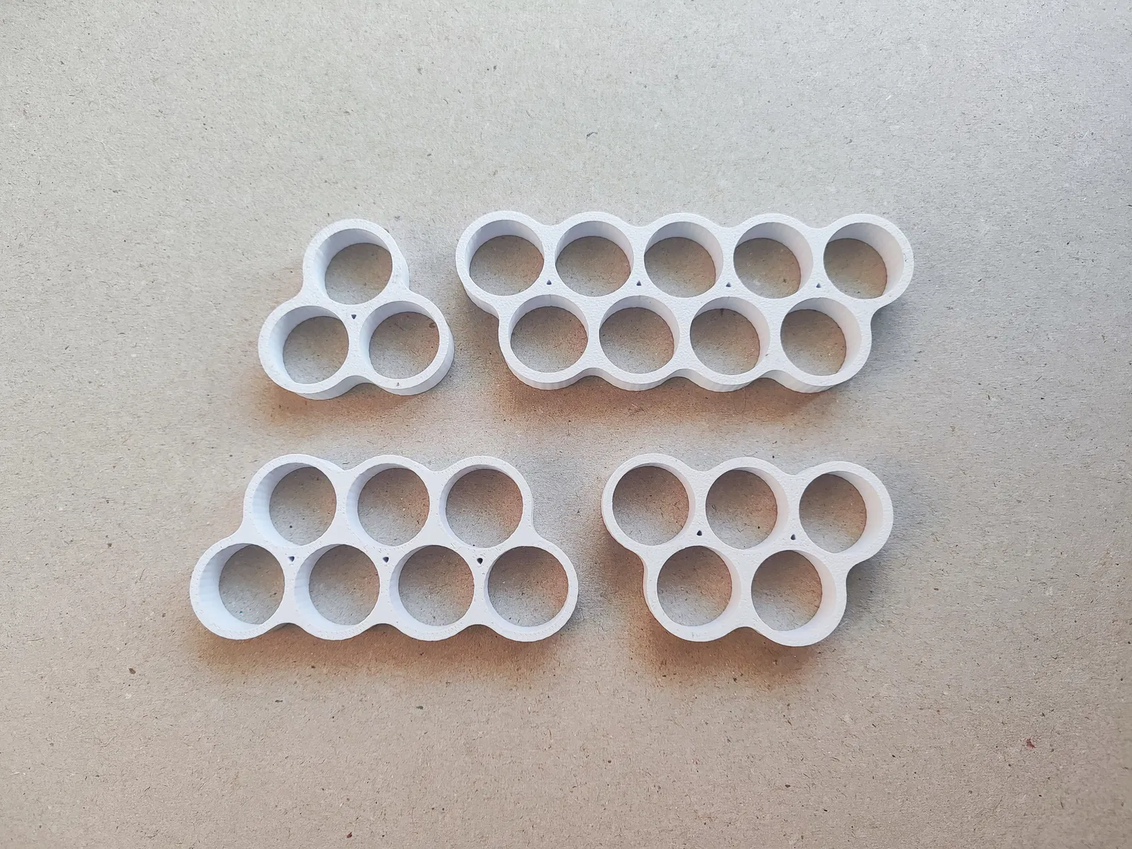 Bộ này có thiết kế xếp chồng (offset) thay vì lưới vuông truyền thống. Bằng cách lồng các hàng lại với nhau, các đế giữ này giúp giảm đáng kể kích thước tổng thể của bộ pin, làm cho chúng trở nên lý tưởng cho các dự án cần tiết kiệm không gian tối đa (như bên trong khung xe đạp điện hoặc ống di động).