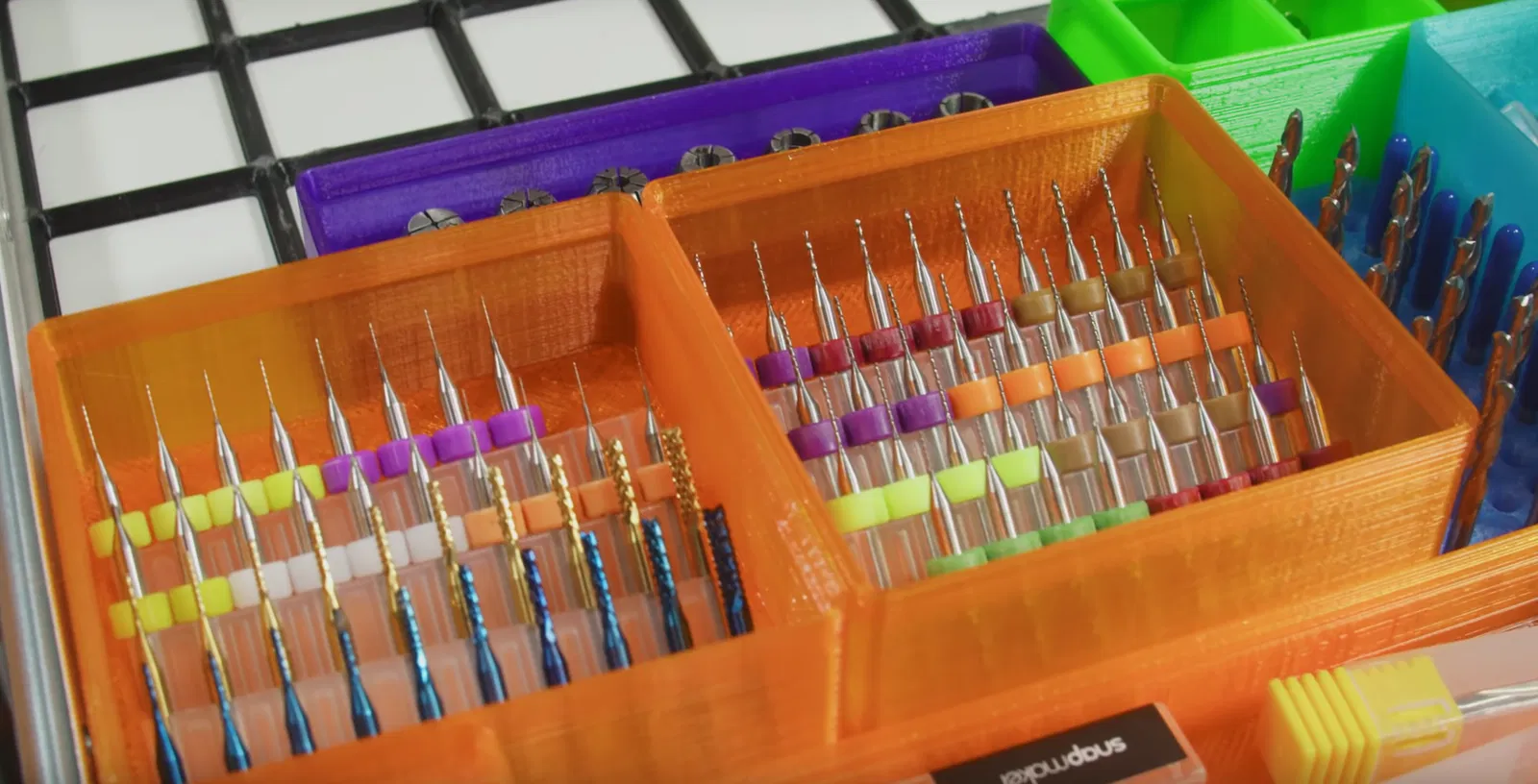 Tái đăng tải bộ khay đựng mũi phay CNC Gridfinity của Zack, lý tưởng để cất giữ mũi khoan và mũi cắt cho máy CNC của bạn. Có nhiều loại khay khác nhau, bao gồm cả loại hộp trang sức, loại số lượng lớn và loại ống, phù hợp với các kích cỡ mũi khoan khác nhau.