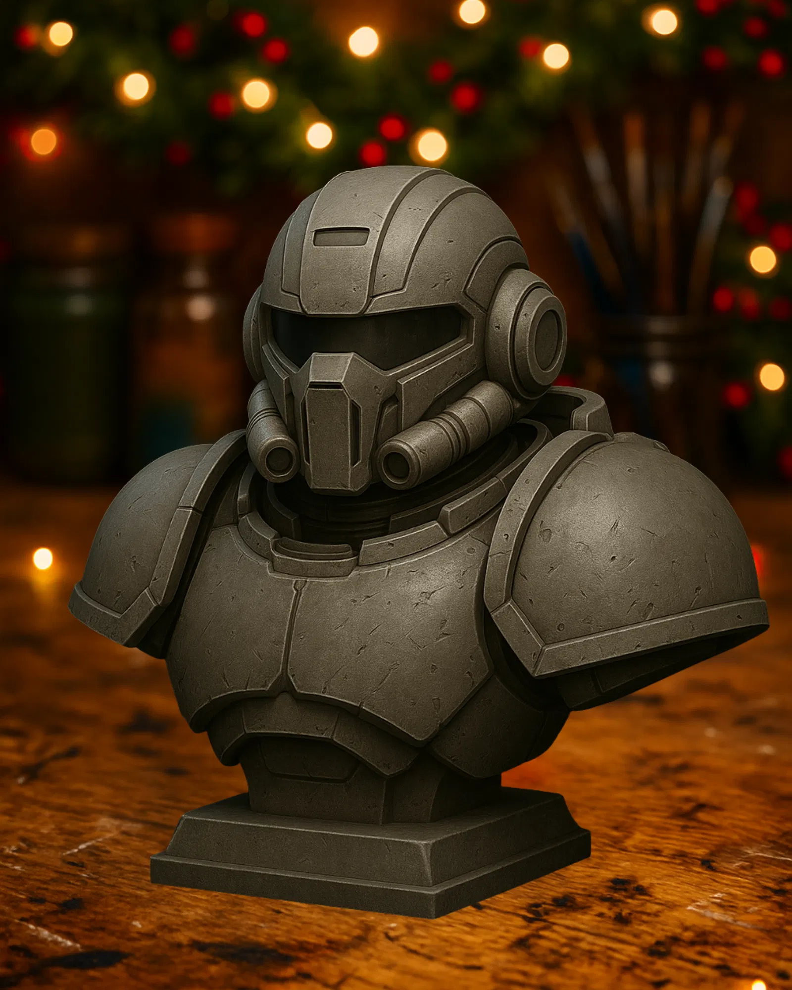 Tượng bán thân người lính bọc thép, một tác phẩm điêu khắc độc đáo theo phong cách khoa học viễn tưởng, hoàn hảo cho bộ sưu tập của bạn. In 3D bằng PLA, file STL sẵn sàng để tải về.