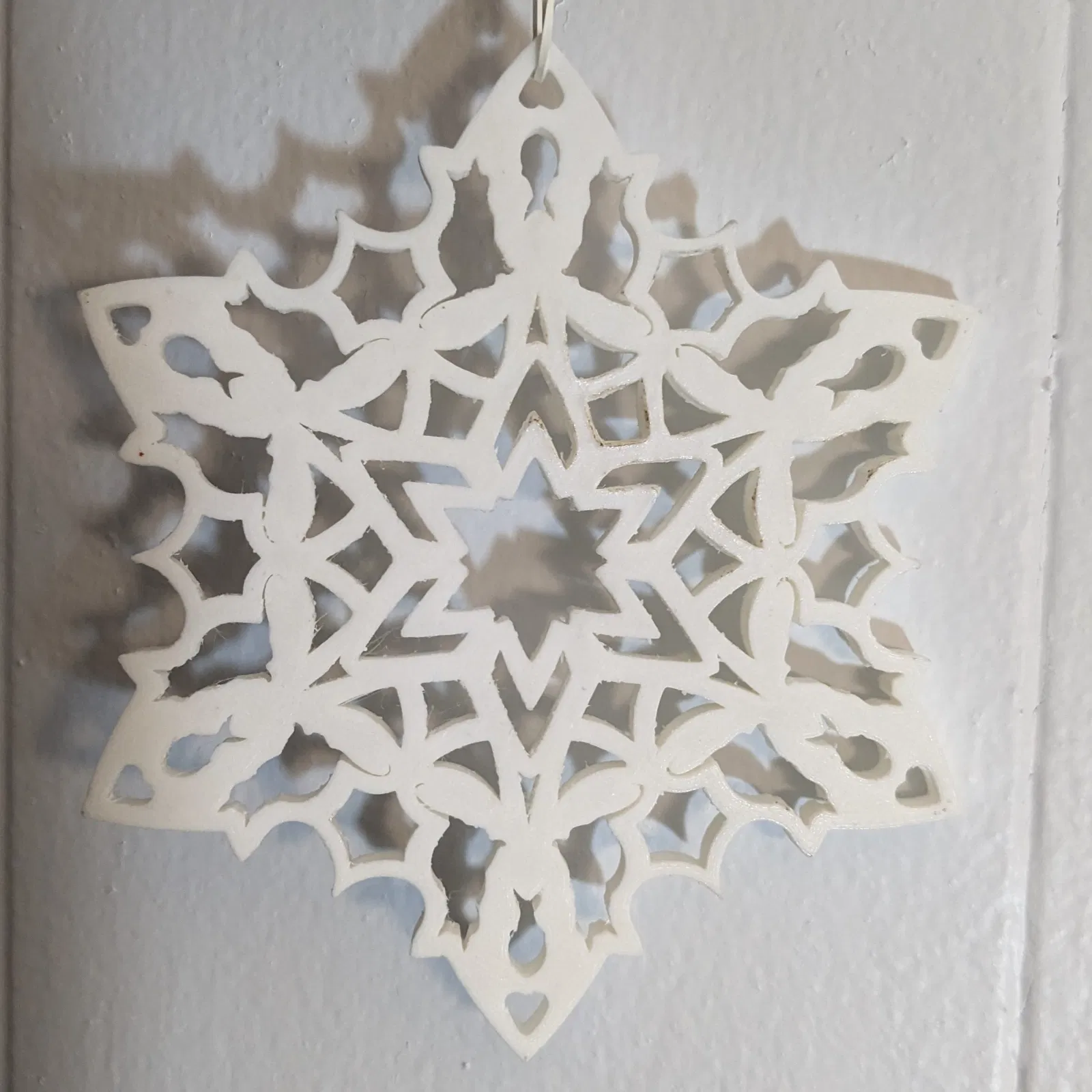 Mẫu bông tuyết này có hình bóng mèo và cá tinh tế. Hoàn hảo cho những người yêu mèo muốn thêm nét dễ thương cho đồ trang trí Giáng sinh và mùa đông của họ. Độ dày 5.563 mm, có thể tùy chỉnh kích thước.