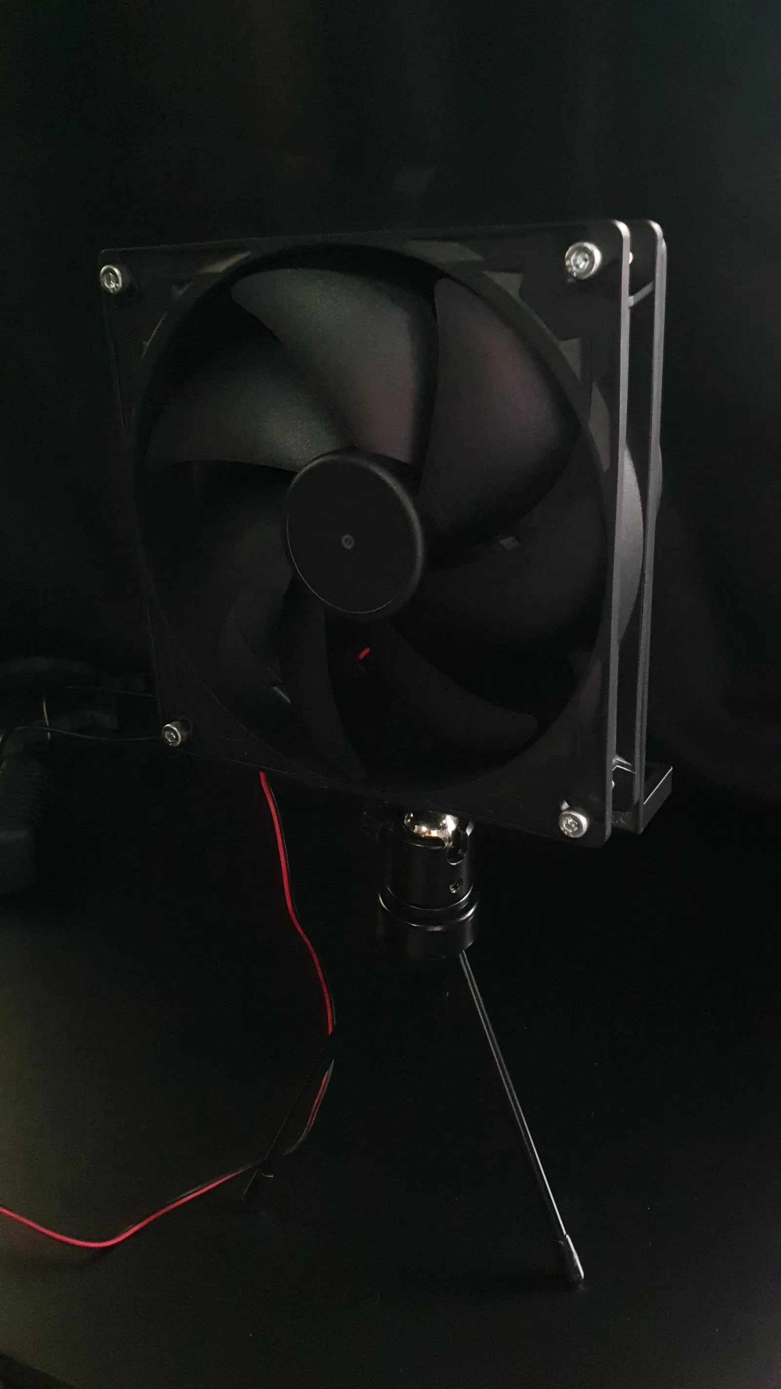 Adapter quạt PC 140mm cho ống 100mm có đế tripod, dùng làm hệ thống hút khí. Mẫu này giúp hút mùi nhựa in, tiết kiệm filament, không cần support và dễ dàng lắp đặt trên bàn hoặc treo. Cần ốc M4, đai ốc 1/4 inch, kẹp 100mm và ống 100mm để hoàn chỉnh.