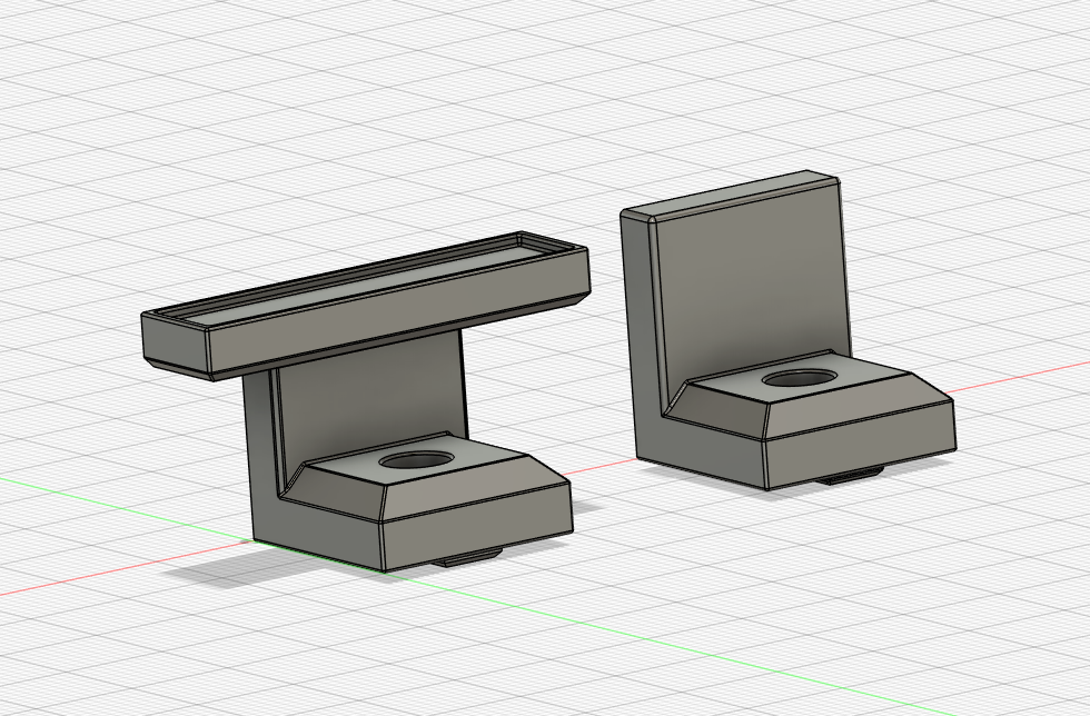 Gắn mỗi chặn giường vào thanh nhôm giường 2020 bằng một vít M3x8 và một T‑nut.