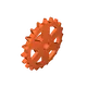 Gắn Trục dẫn động vào lỗ phía trước và trên mỗi trục, đặt 1 Khoảng cách bánh xe 1, 1 Bánh xe xích, 2 Khoảng cách trục dẫn động, 1 Bánh xe xích. Đảm bảo phần vát của Bánh xe xích hướng vào trong và phần vát của Khoảng cách trục dẫn động hướng vào trong để tạo rãnh cho xích. Cố định bằng Chốt bánh xe. Dọn dẹp bản in và đảm bảo chúng quay trơn tru trước khi dán chốt bánh xe vào lỗ trên trục.
