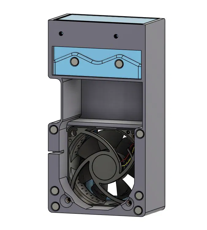 Một trong ba bộ phận chèn nhiệt (heat inserts) phải được gắn vào quạt 6025, để dùng nó làm giá đỡ cho bộ phận mở rộng HEPA.