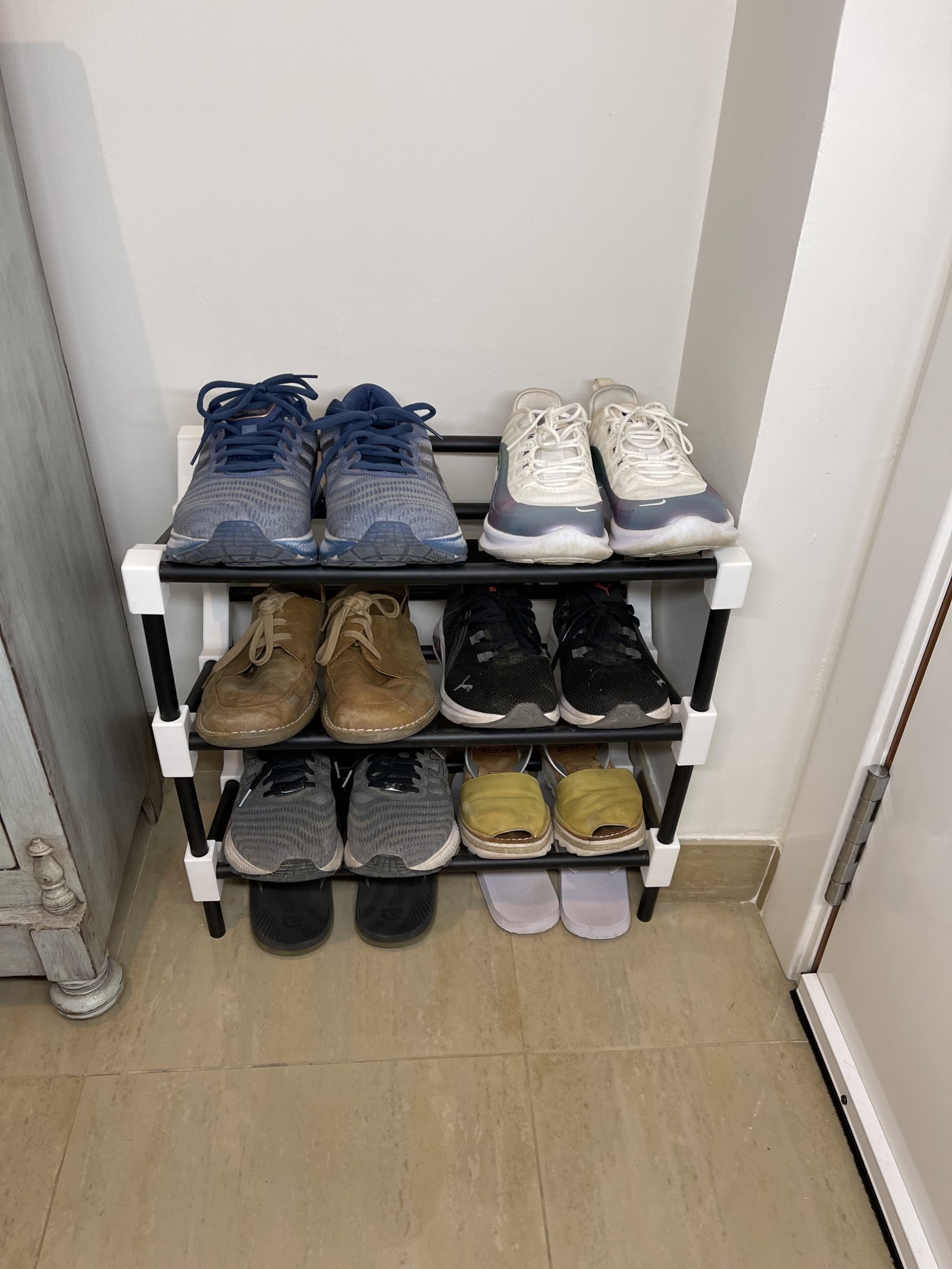 Ý tưởng của thiết kế này là với 2 mô hình in 3D khác nhau và một số ống PVC ø16mm, bạn có thể tạo ra giá giày với kích thước phù hợp với nhu cầu của bạn.