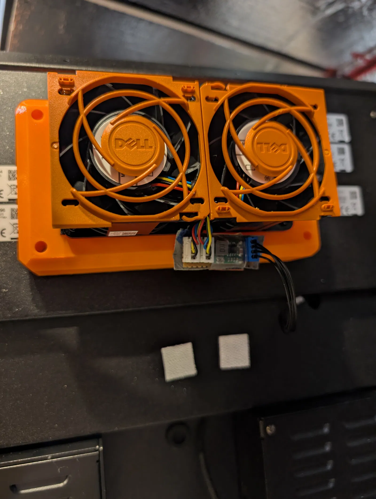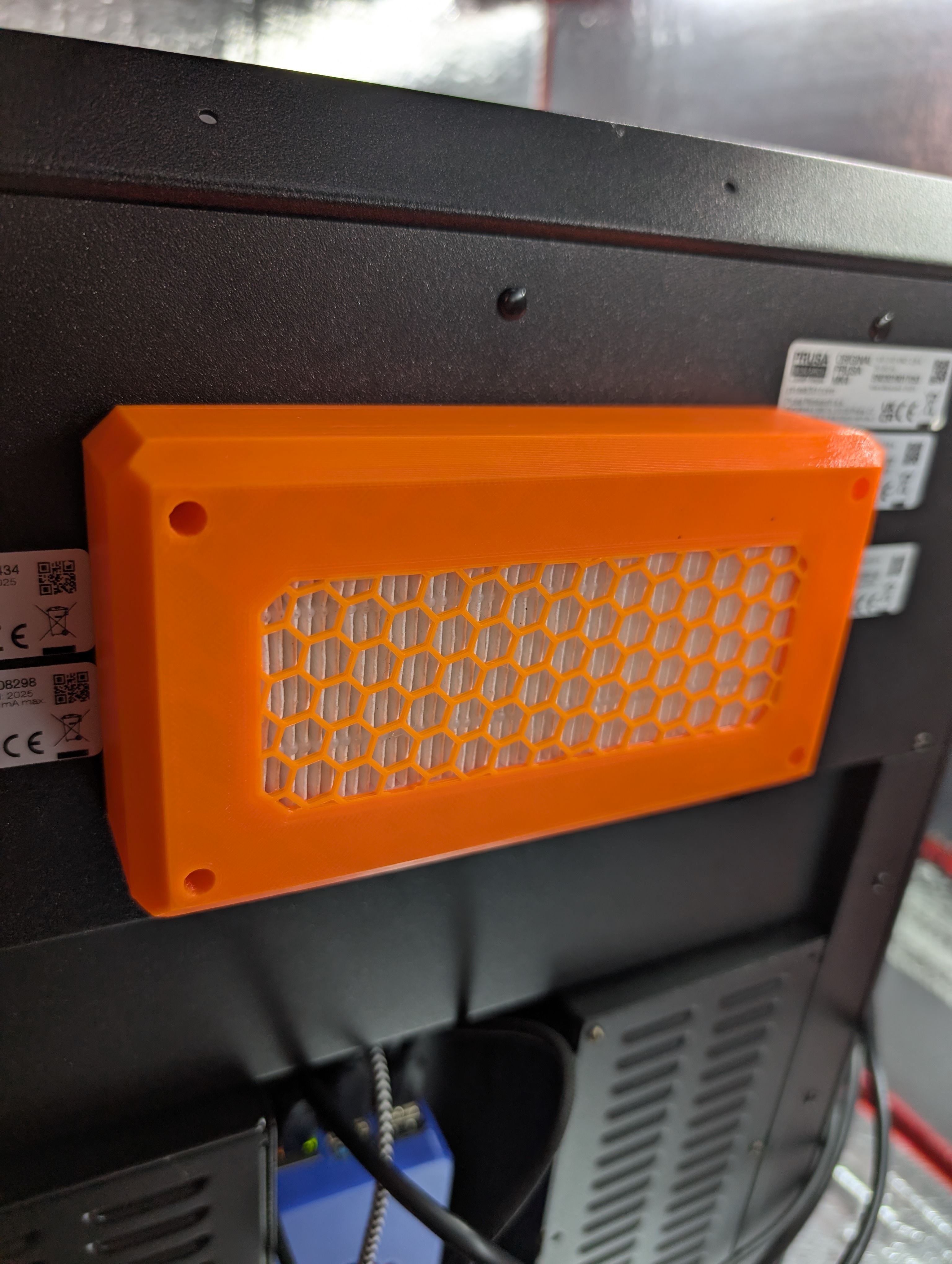 Đây là một thiết kế cho hộp lọc HEPA và than hoạt tính để có bộ lọc buồng Prusa Core One DIY Adv. Tôi đã mua một khối lọc than hoạt tính được làm cho máy in Bambu và sử dụng các viên nén từ chúng (hộp trong thiết kế này sẽ chứa gần 80% hộp bạn nhận được cho Bambu. Kết hợp với bộ lọc hepa cho máy hút bụi nhỏ, điều này mang lại bộ lọc buồng tốt. Tôi thấy rằng chỉ hai quạt đẩy là không đủ mạnh. Tôi có một vài quạt máy chủ Dell, là loại 12V, vì vậy tôi đã kết nối một bộ chuyển đổi buck để giảm xuống 6V (chúng kêu ré lên ở 12V) và chia sẻ đường PWM trên hai quạt. Đường tach là từ một trong những chiếc quạt. Đã mua một cáp được bấm sẵn CLICKMATE 4 chân (hình ảnh cho thấy cáp tự chế của tôi) kết nối với các đầu nối quạt3.