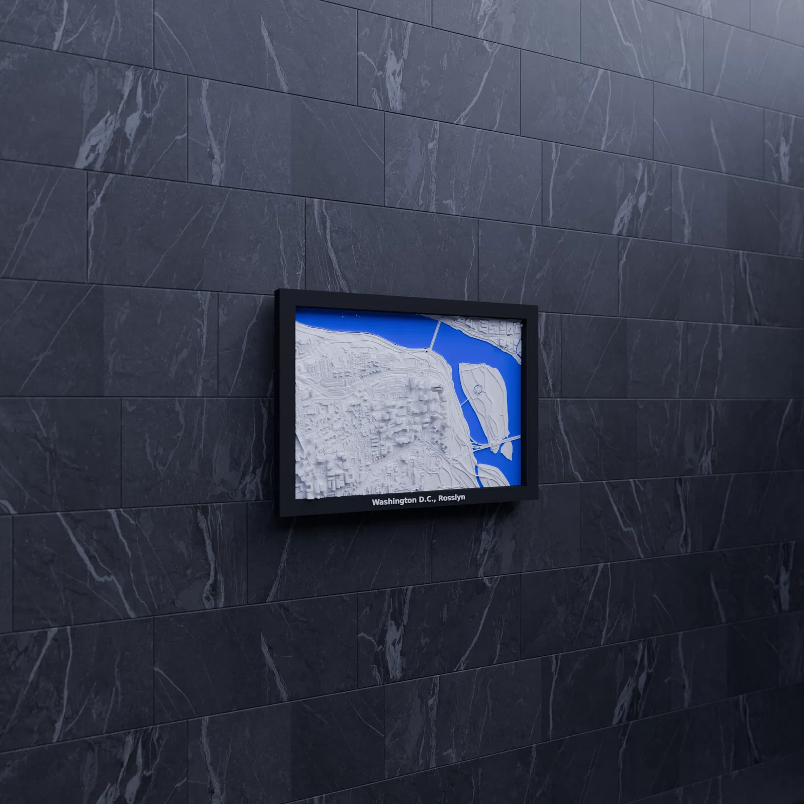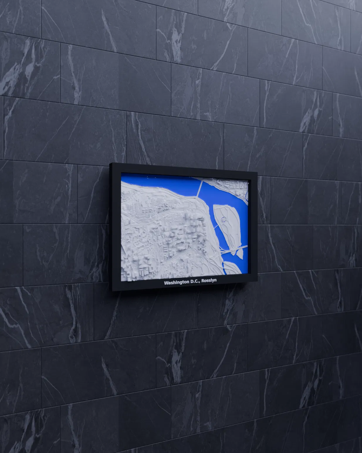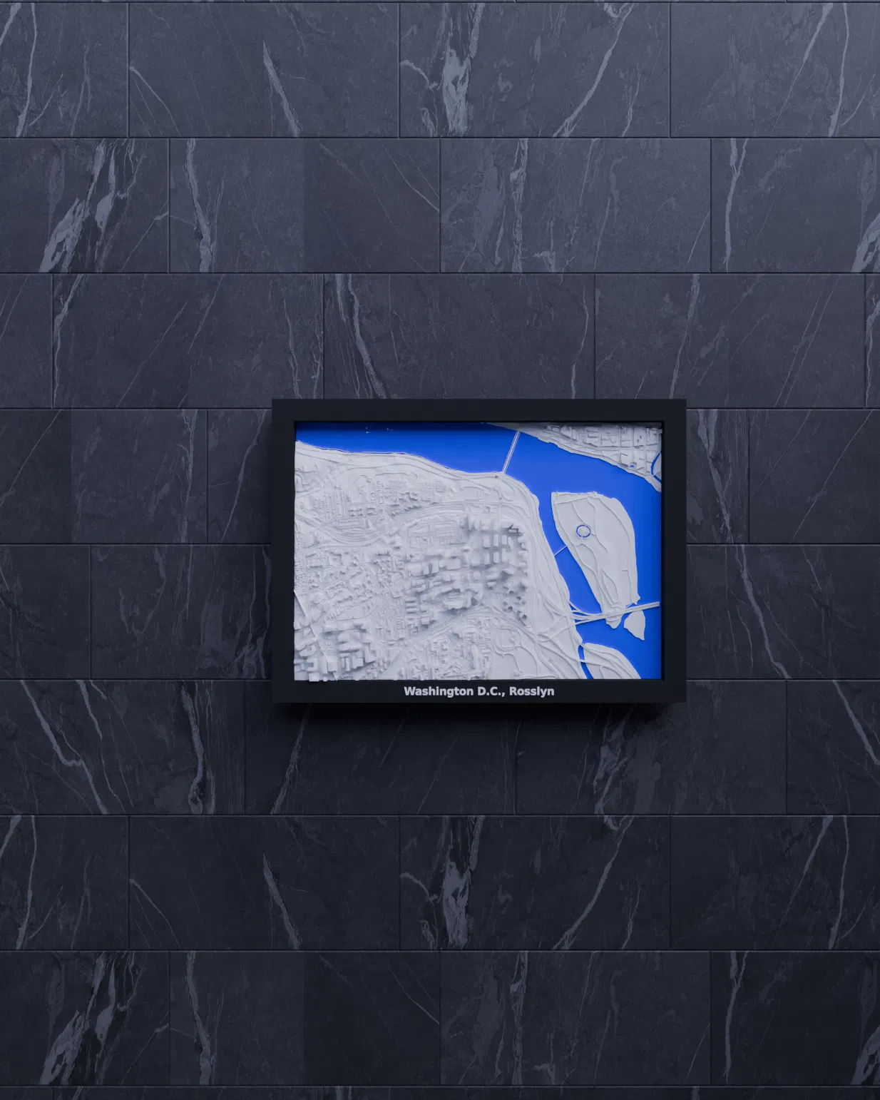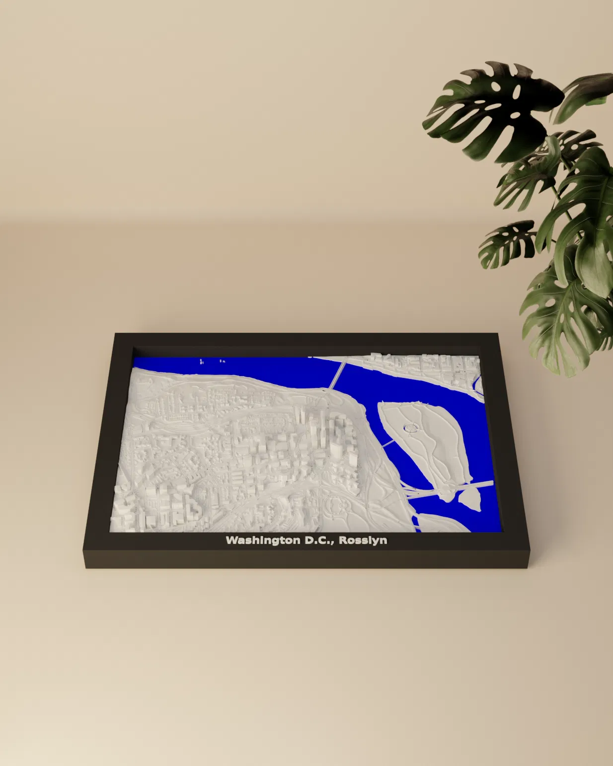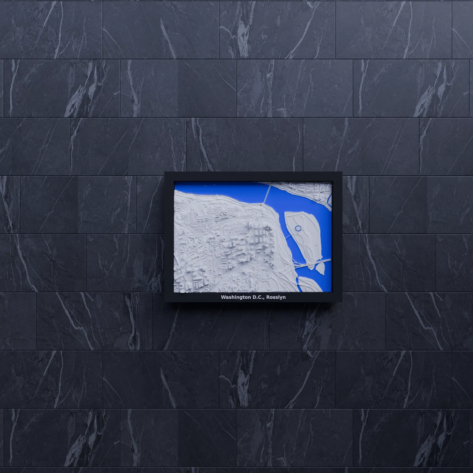 Mô hình địa hình 3D thu nhỏ của Washington D.C., Rosslyn, Hoa Kỳ. Mô hình được tạo từ dữ liệu địa lý, kích thước 170.5 mm x 119.5 mm, tỷ lệ ~14909:1. Lý tưởng để trang trí, giáo dục hoặc hình dung kiến trúc.