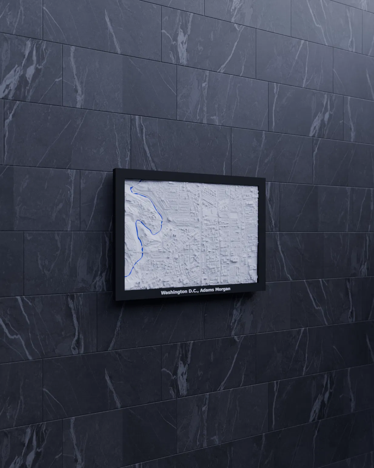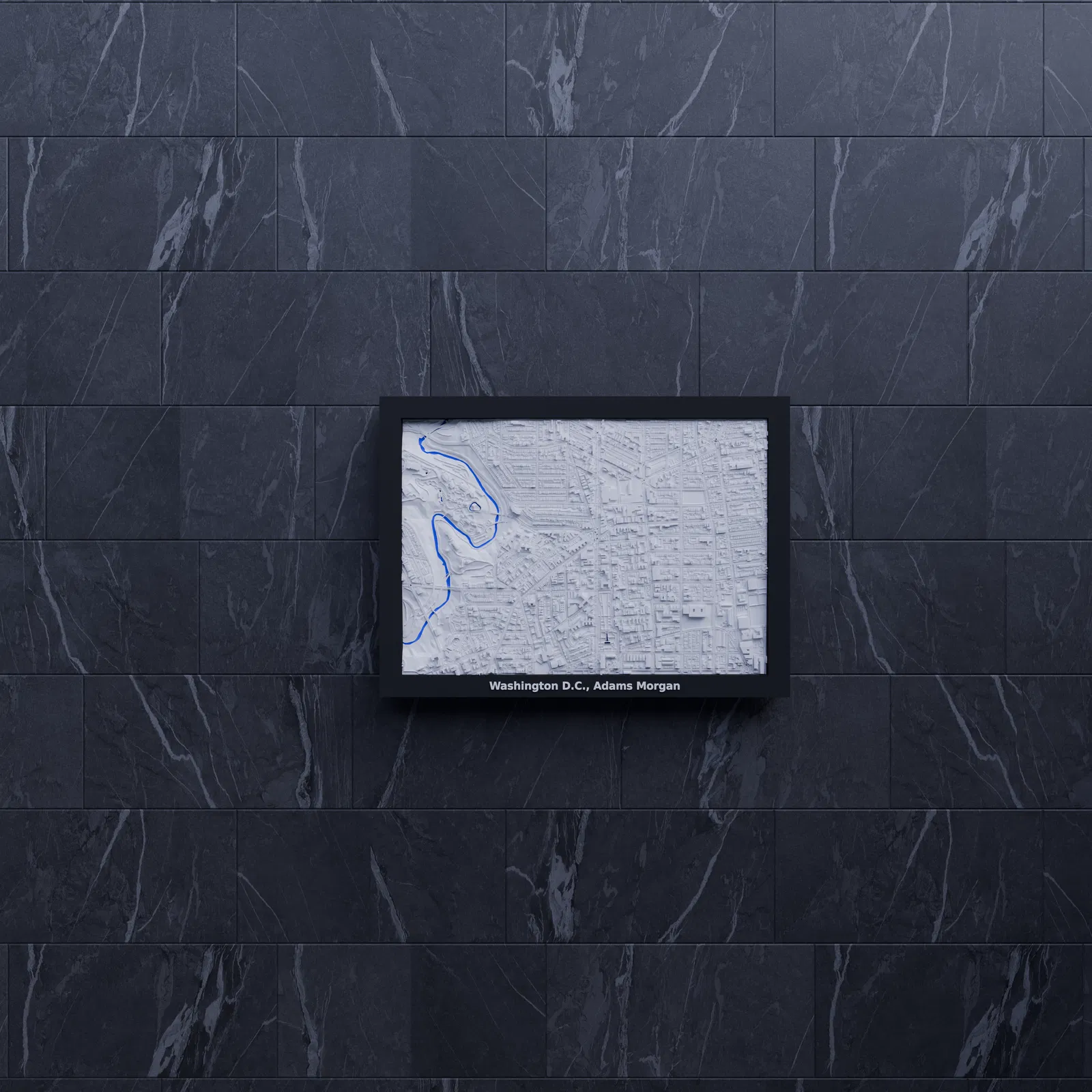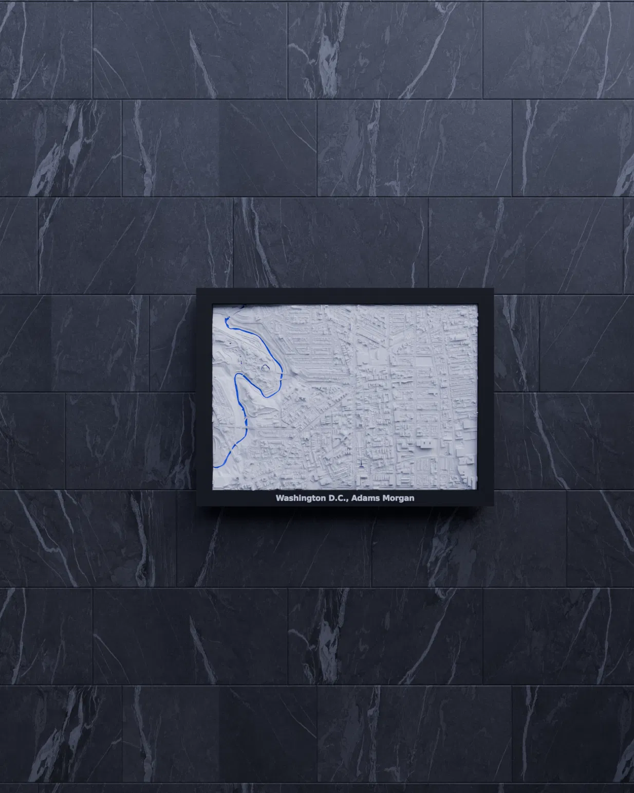 Lưu giữ vẻ đẹp cảnh quan thành phố Washington D.C., Adams Morgan với mô hình địa hình thu nhỏ này! Mô hình 3D này đại diện cho khu vực địa lý quanh tọa độ 38.926, -77.038 (LatLng).