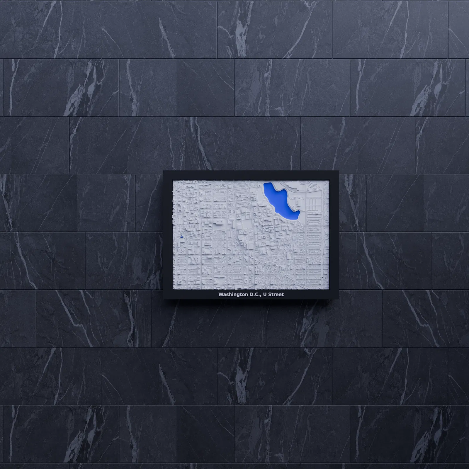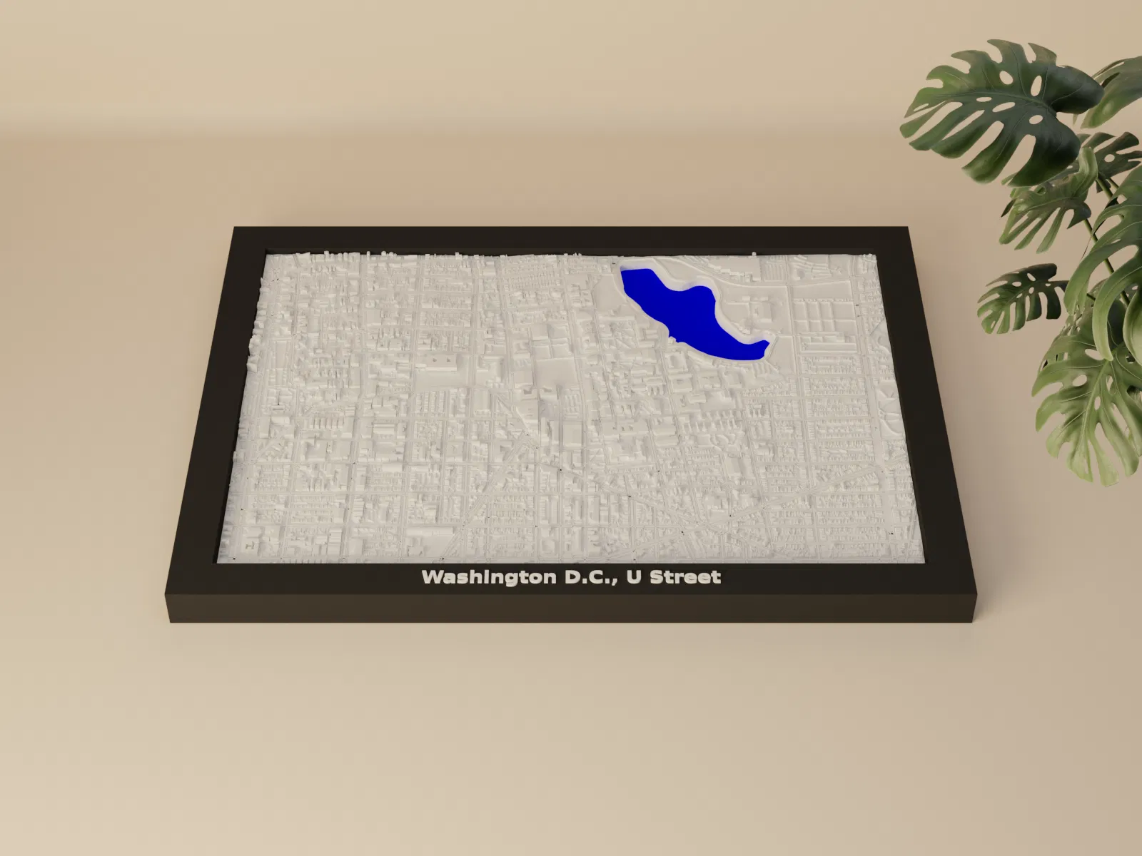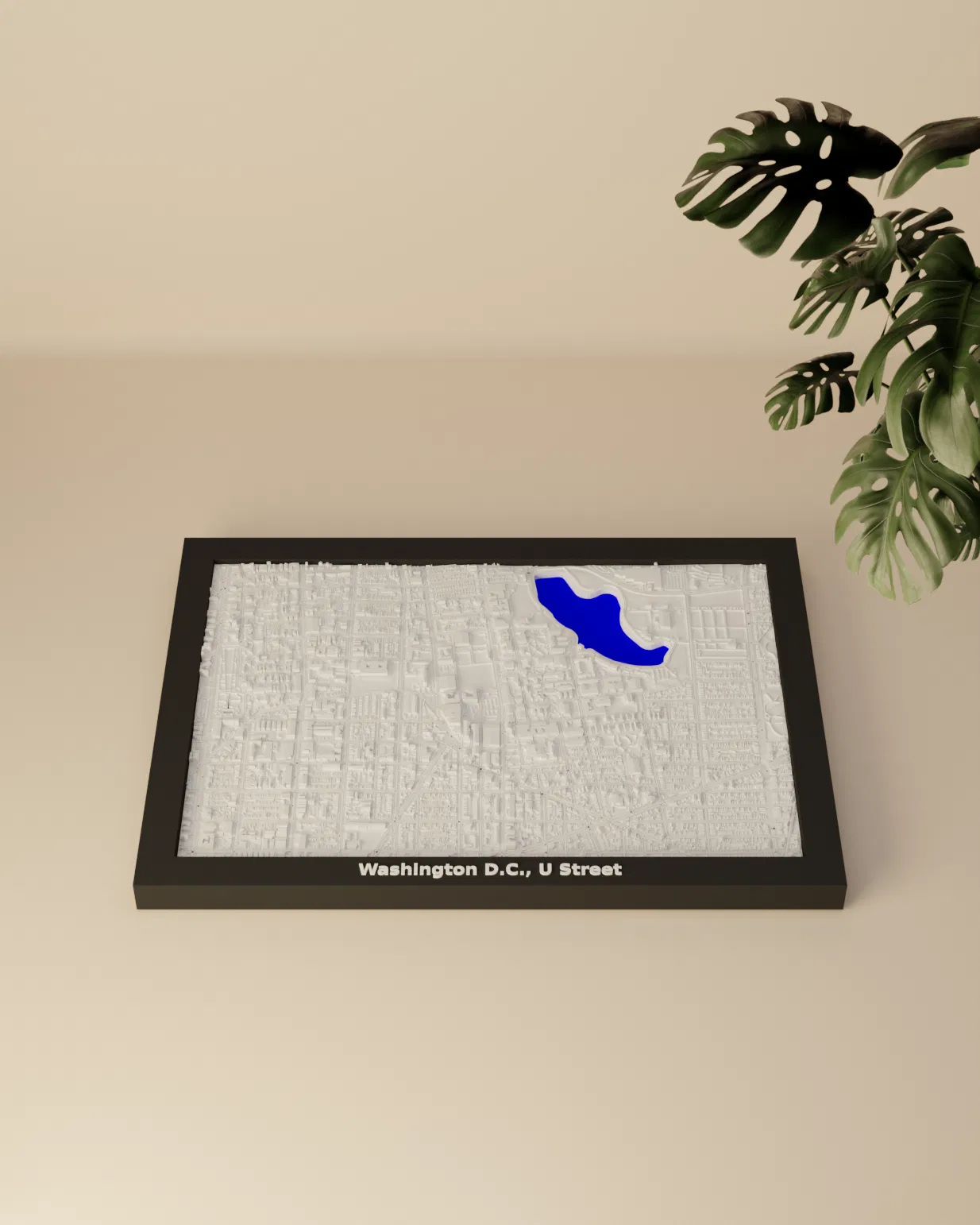 Mô hình thu nhỏ địa hình 3D Washington D.C., U Street - Hoa Kỳ, tái hiện cảnh quan đô thị chân thực từ dữ liệu địa lý. Kích thước in 170.5 mm x 119.5 mm, tỷ lệ ~14909:1. Lý tưởng làm vật trang trí, giáo dục hoặc quà tặng độc đáo.